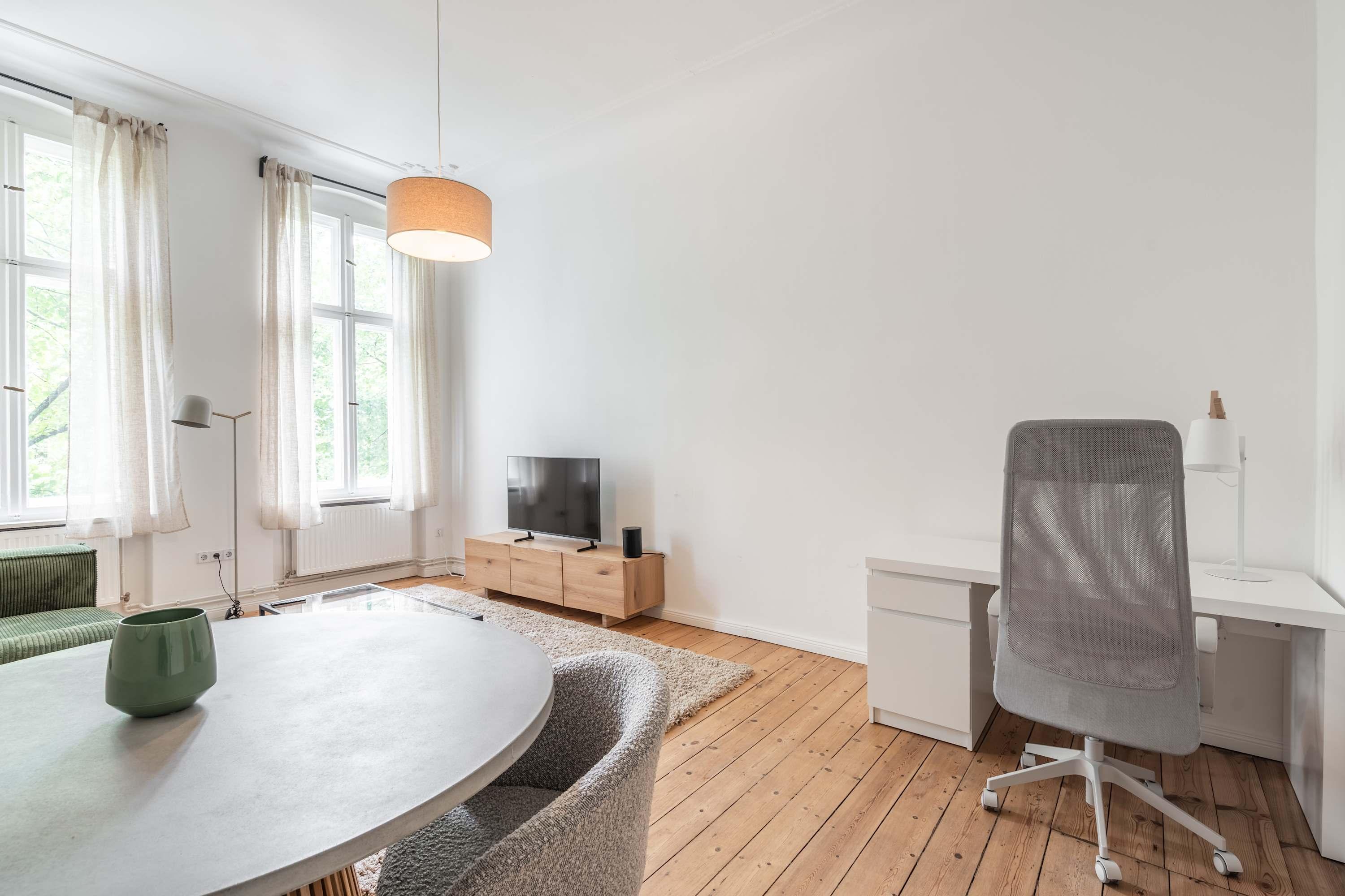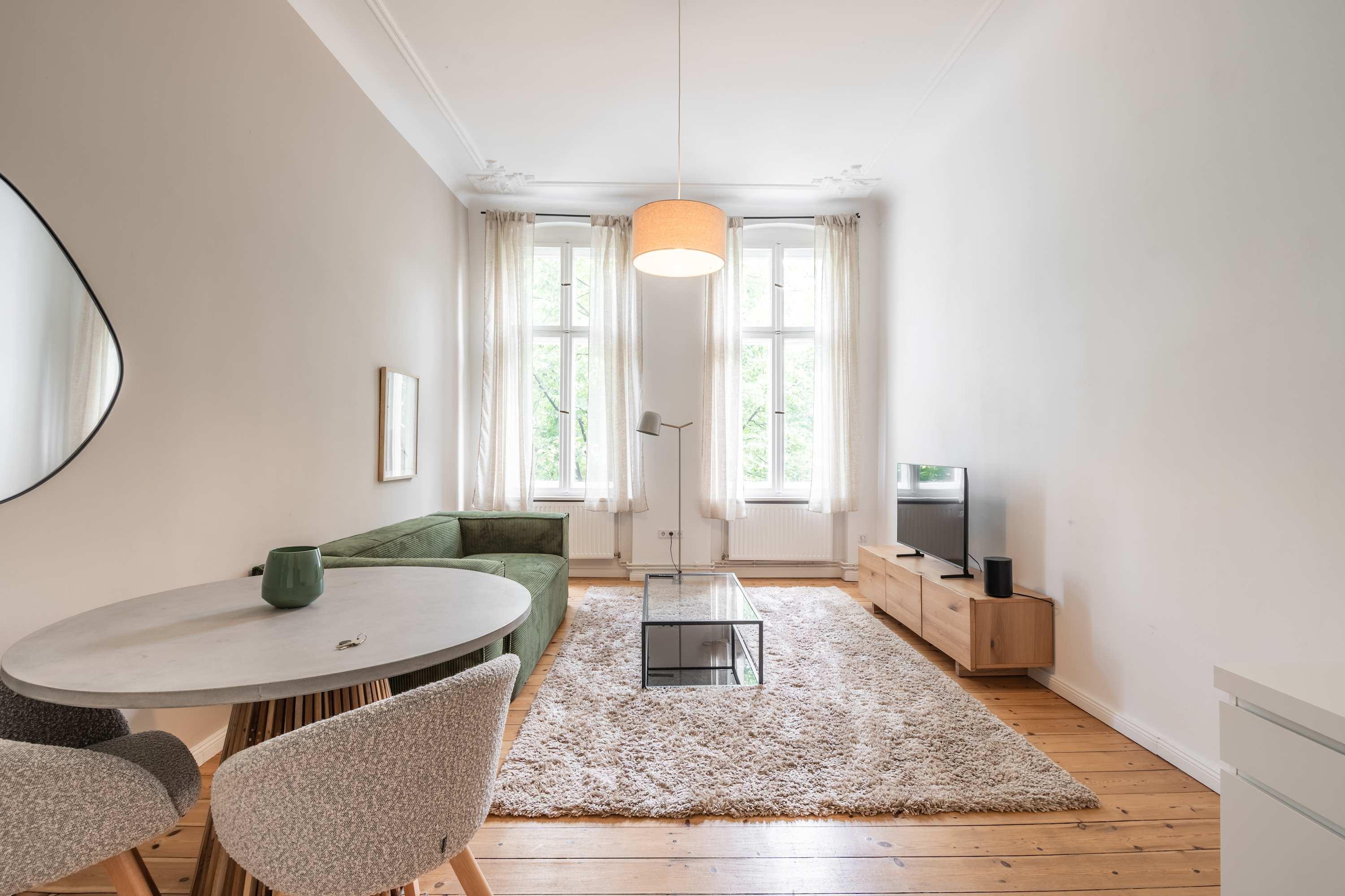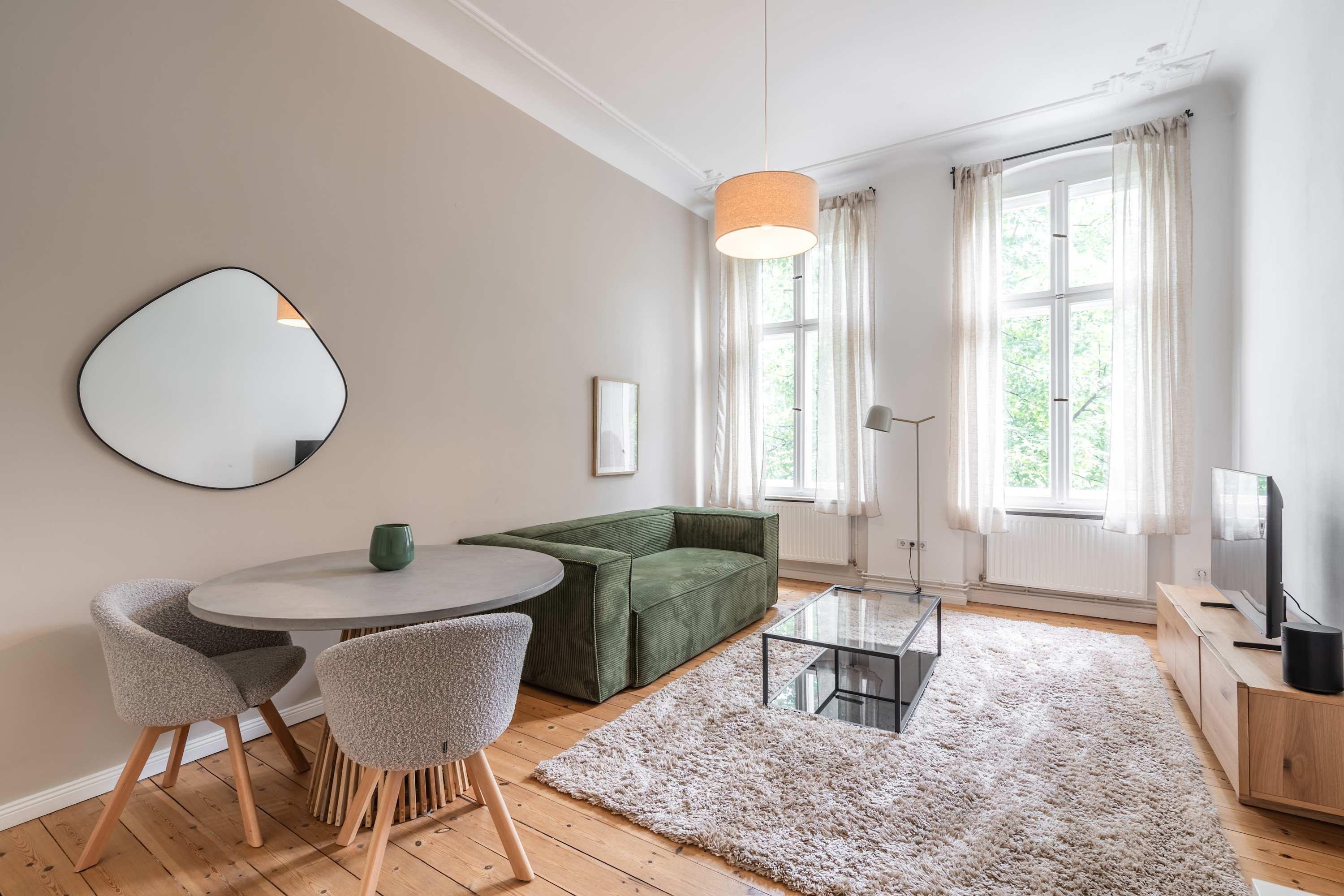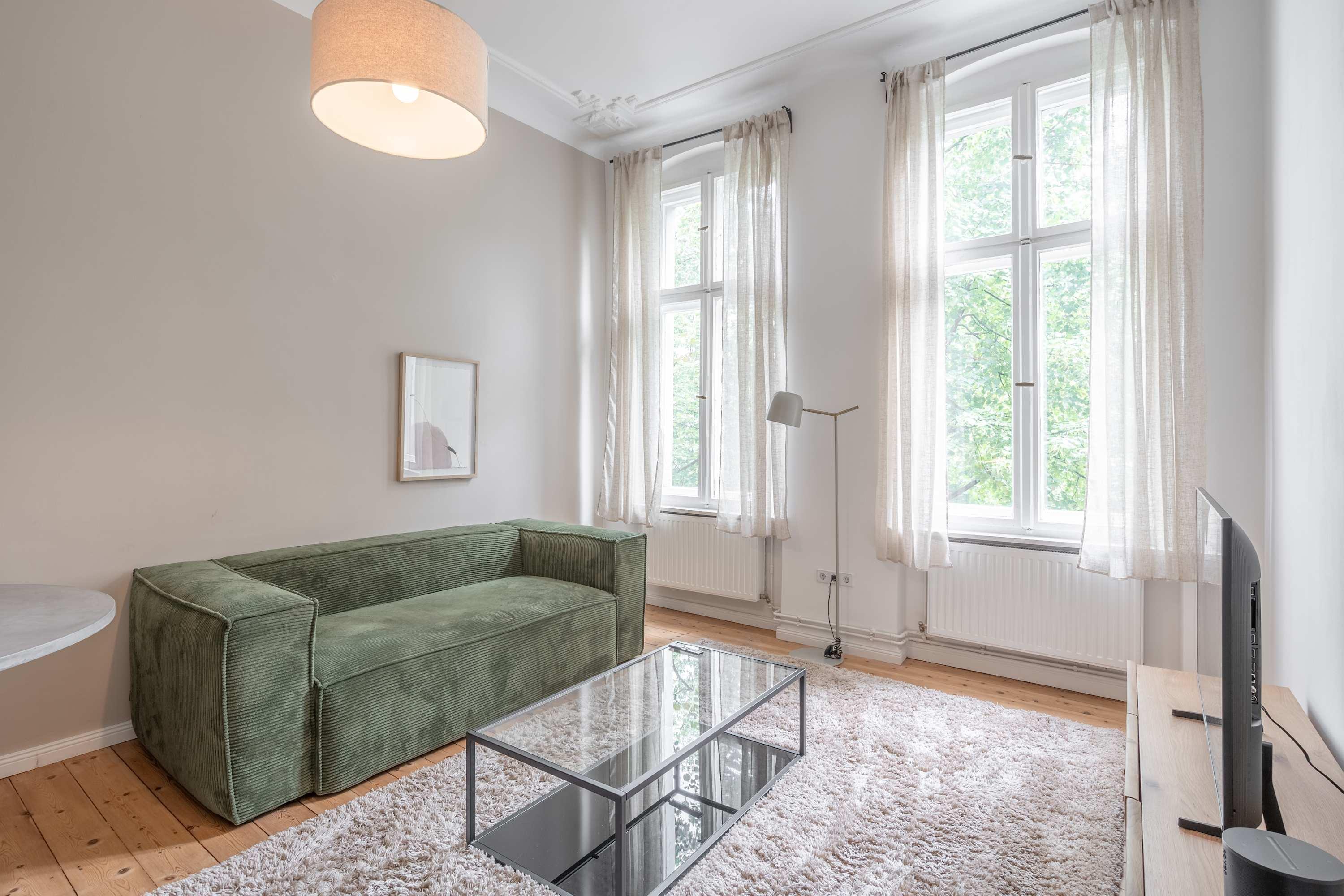 This stunning furnished one bedroom apartment features contemporary design, a fully equipped kitchen, and a cozy living area with breathtaking views. Perfectly situated, you'll have easy access to everything that makes Berlin vibrant and exciting!