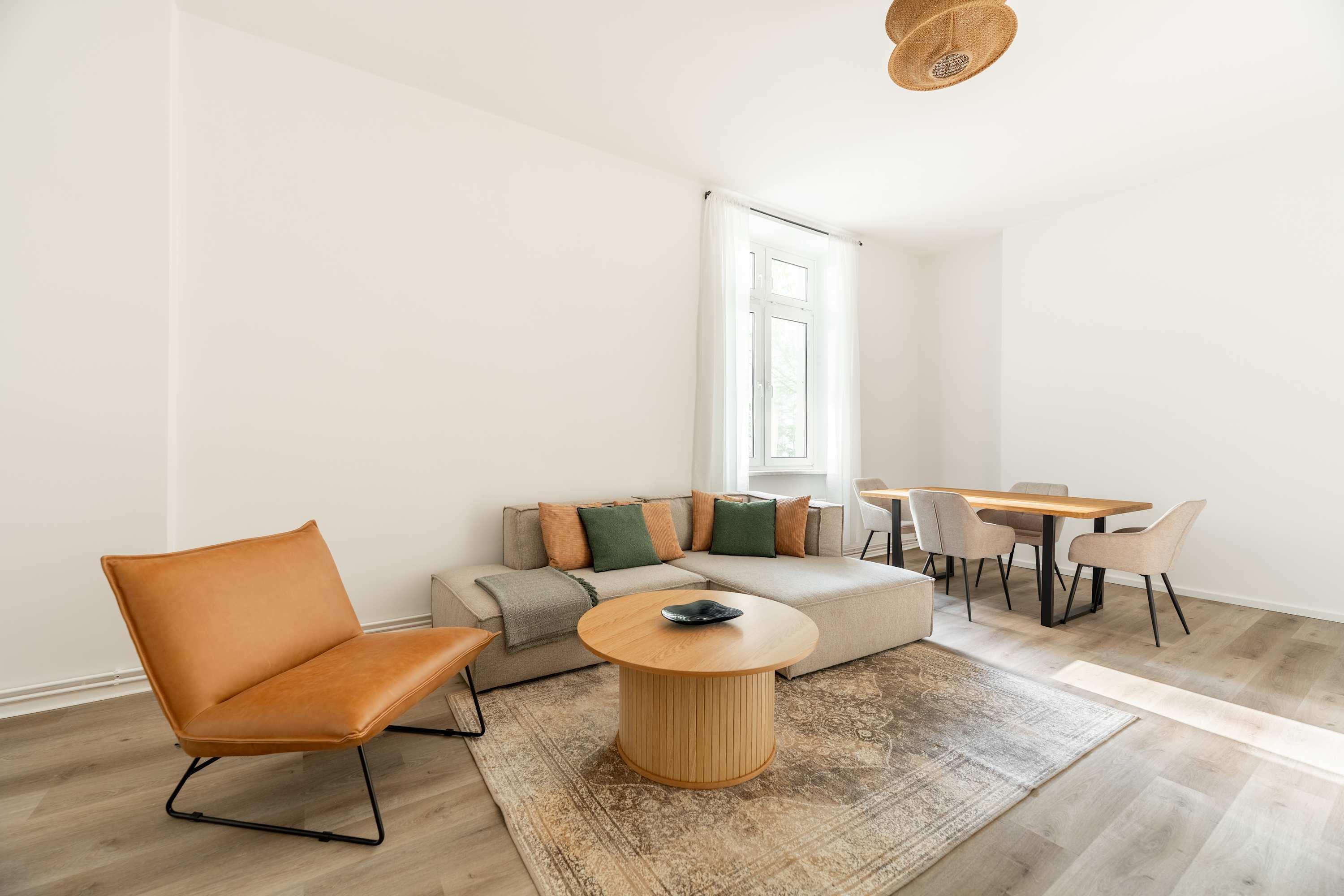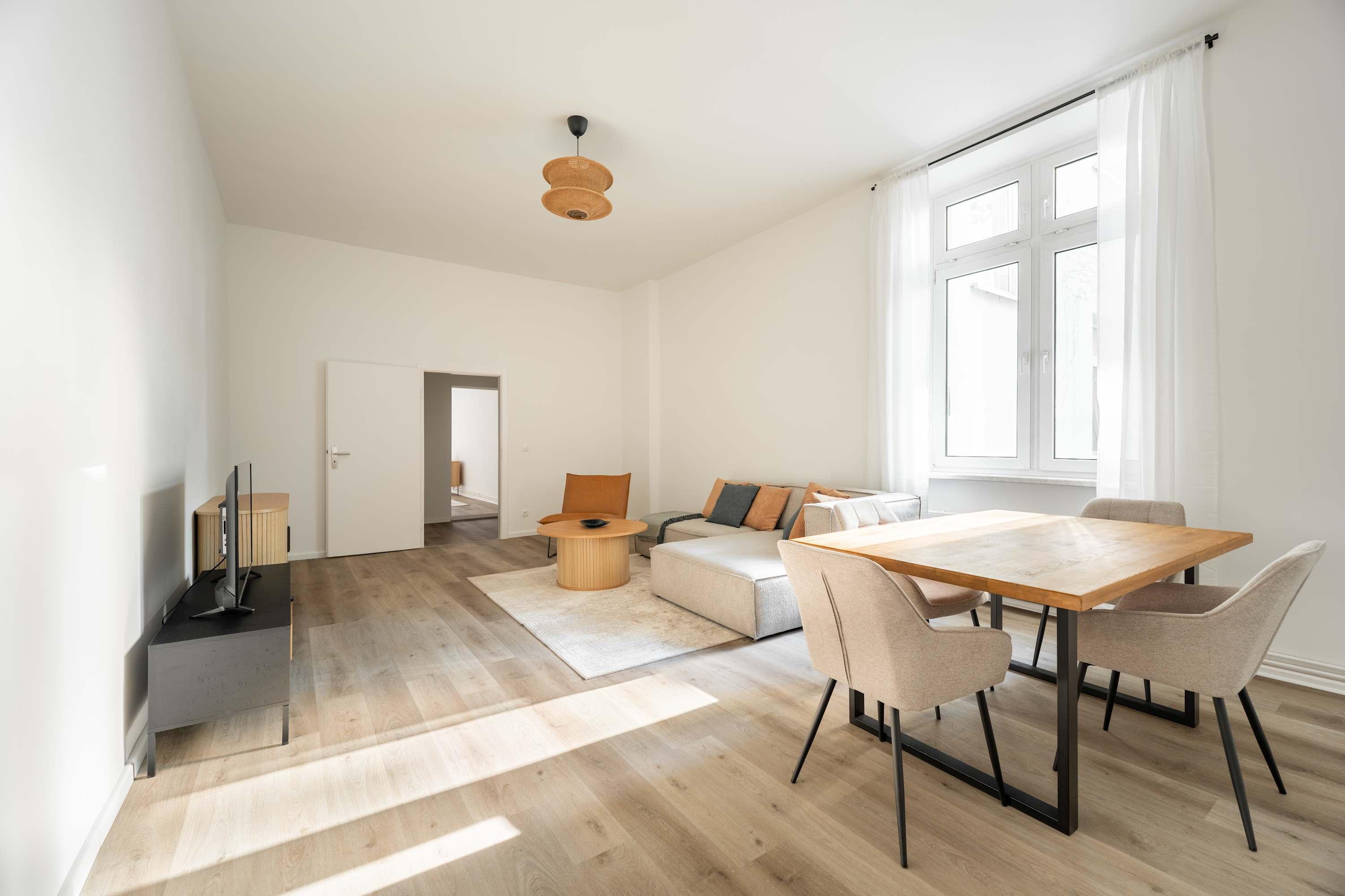This stunning furnished two bedroom apartment features contemporary design, a fully equipped kitchen, and a cozy living area with breathtaking views. Perfectly situated, you'll have easy access to everything that makes Berlin vibrant and exciting!