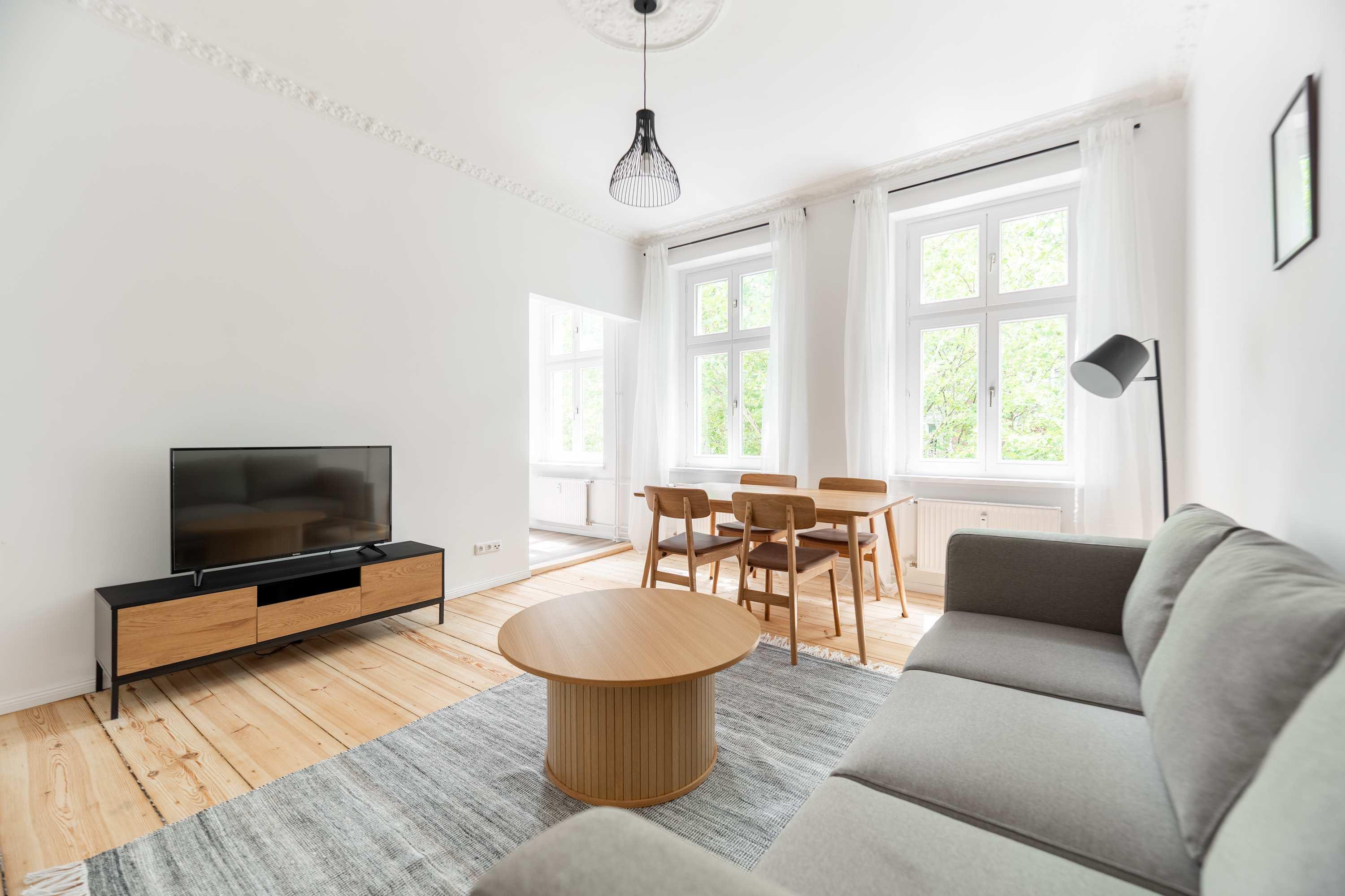 This stunning furnished one bedroom apartment features contemporary design, a fully equipped kitchen, and a cozy living area with breathtaking views. Perfectly situated, you'll have easy access to everything that makes Berlin vibrant and exciting!