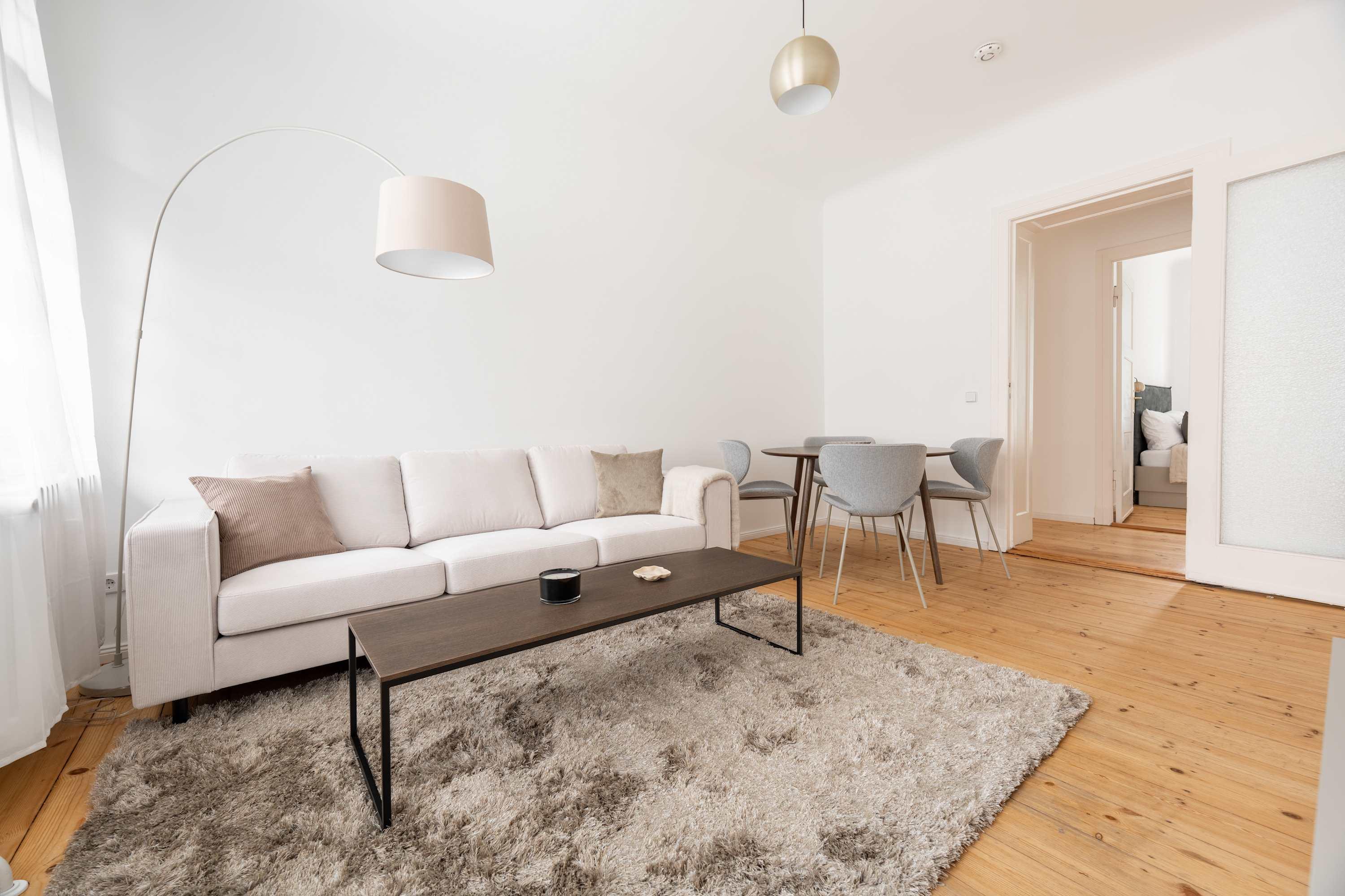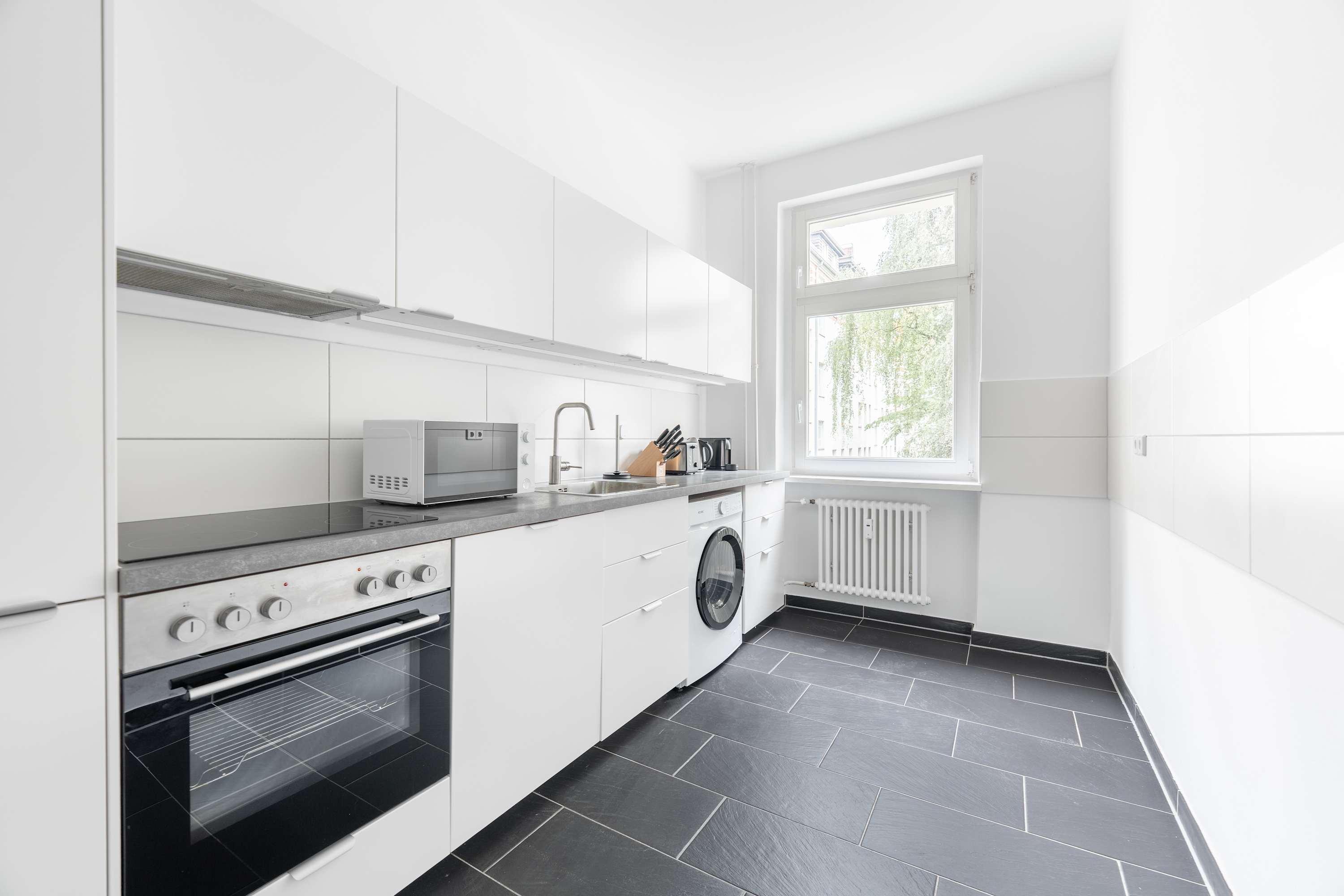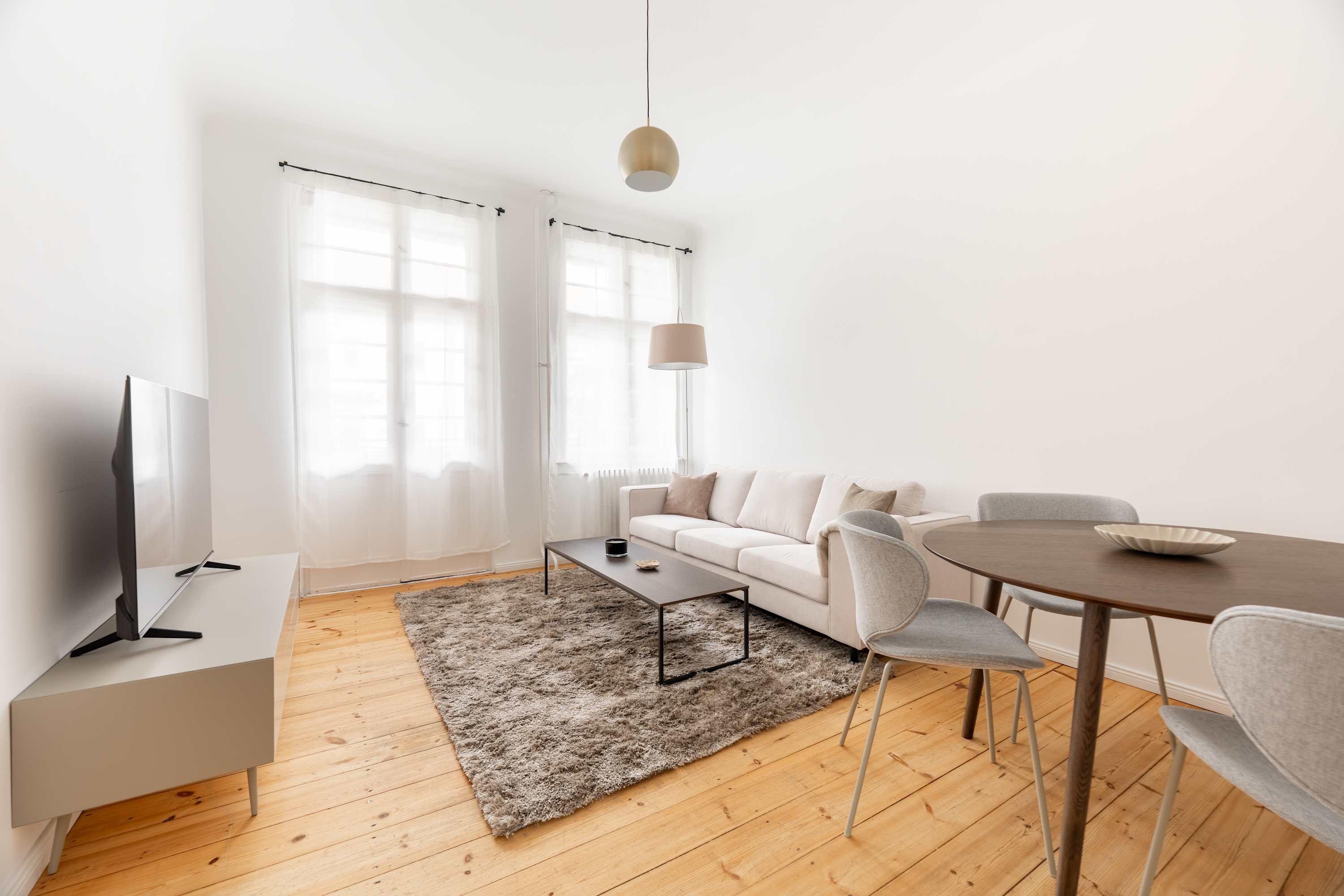 This stunning furnished two bedroom apartment features contemporary design, a fully equipped kitchen, and a cozy living area with breathtaking views. Perfectly situated, you'll have easy access to everything that makes Berlin vibrant and exciting!