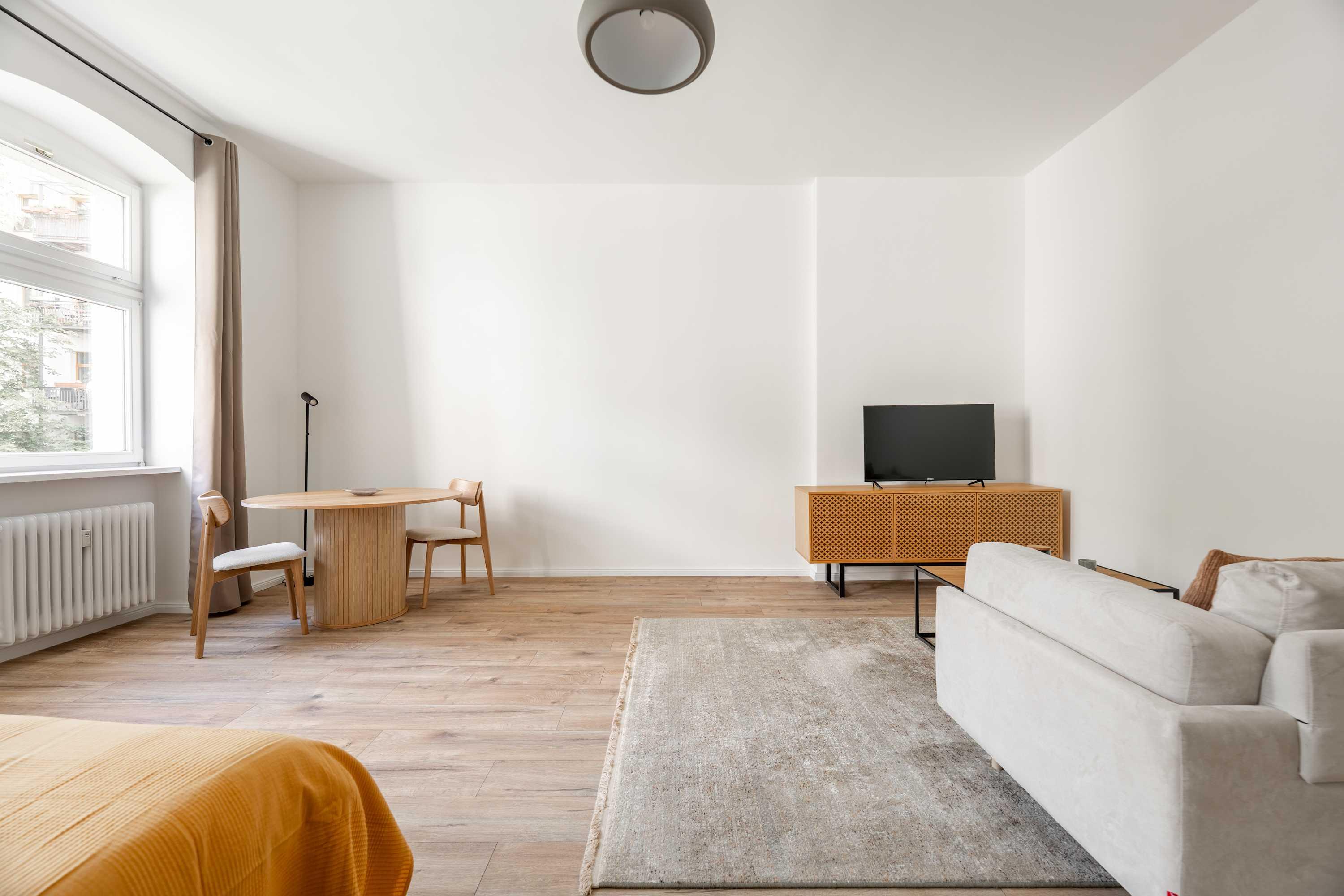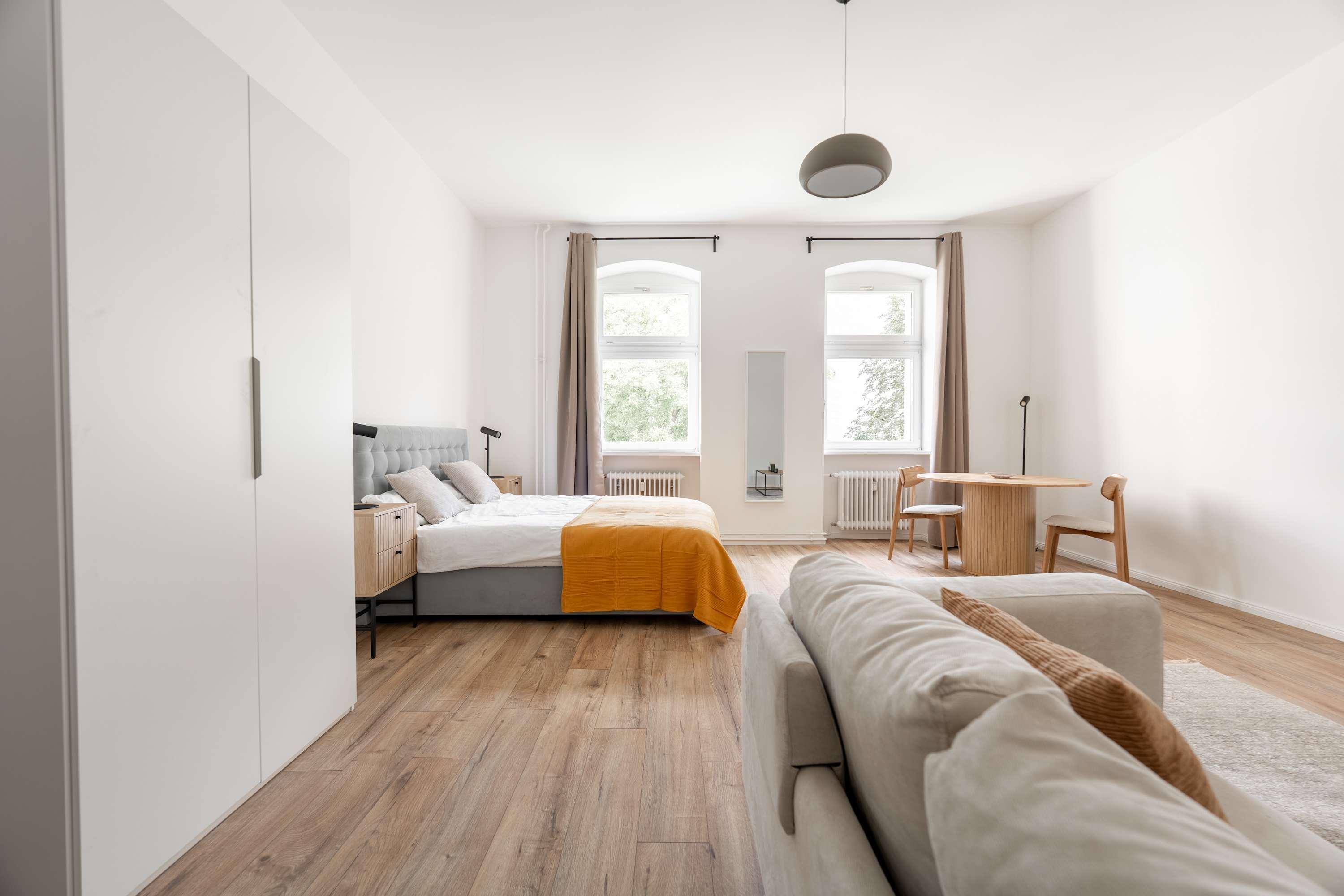 This stunning furnished studio apartment features contemporary design, a fully equipped kitchen, and a cozy living area with breathtaking views. Perfectly situated, you'll have easy access to everything that makes Berlin vibrant and exciting!