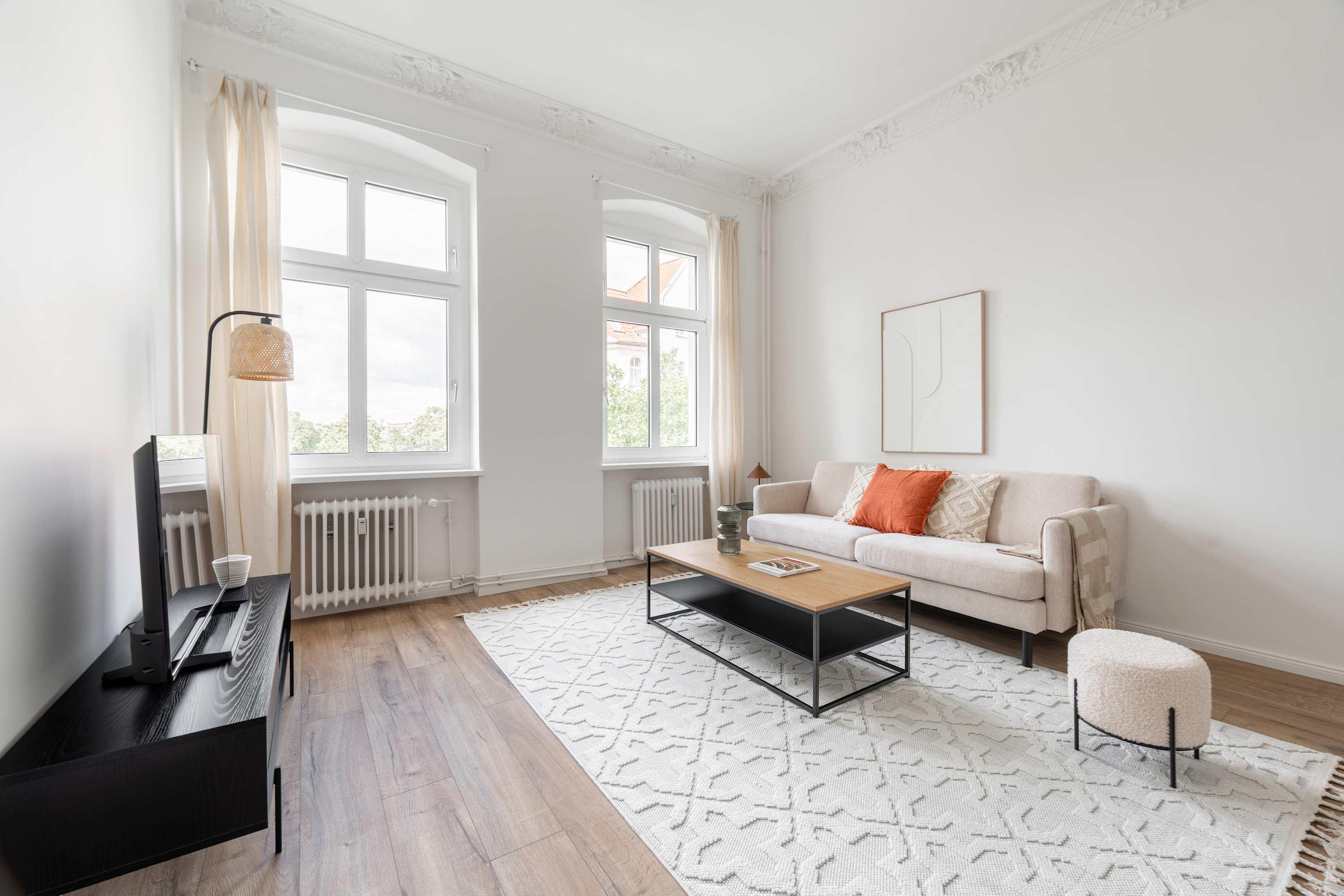 This stunning furnished one bedroom apartment features contemporary design, a fully equipped kitchen, and a cozy living area with breathtaking views. Perfectly situated, you'll have easy access to everything that makes Berlin vibrant and exciting!