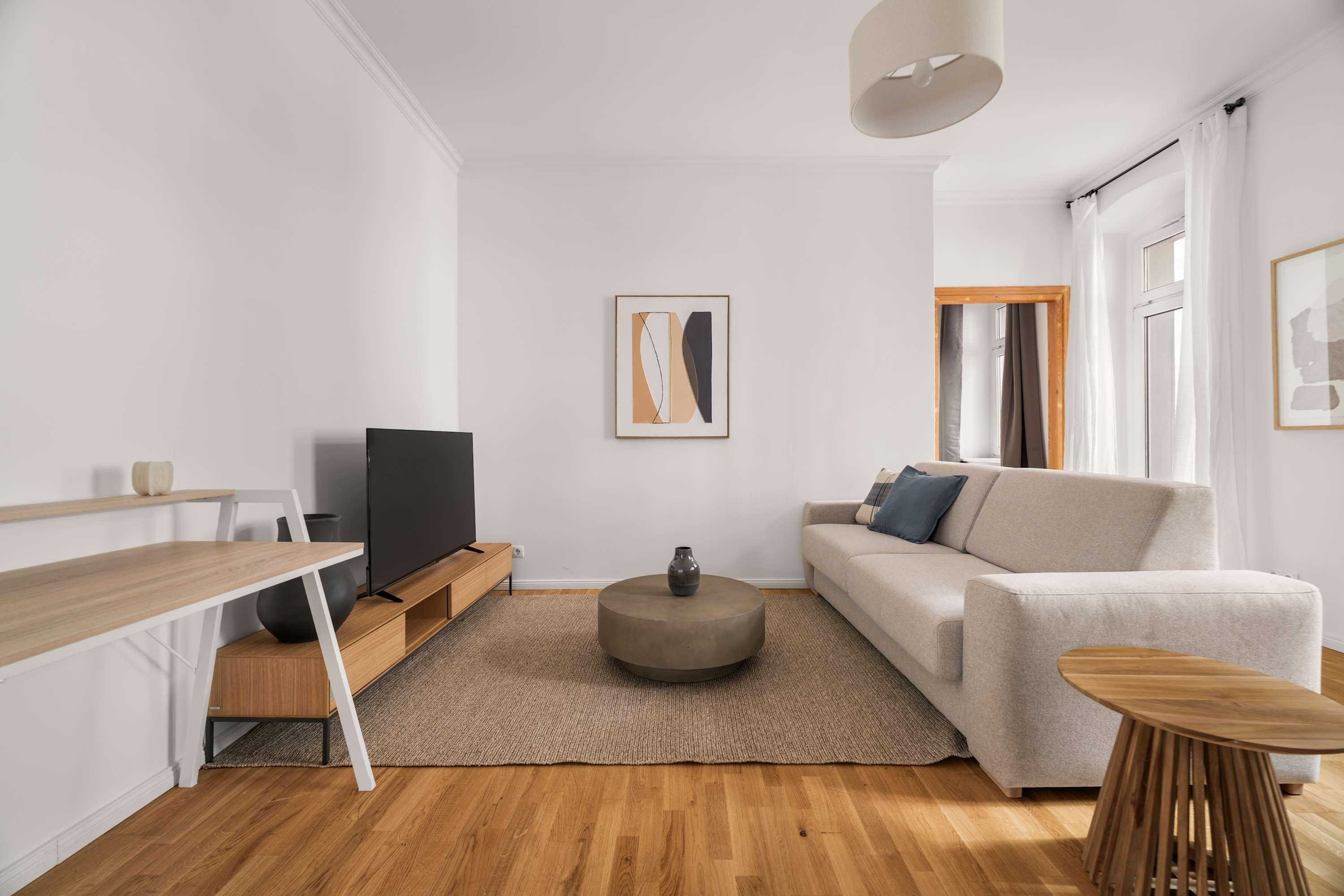 This stunning furnished one bedroom apartment features contemporary design, a fully equipped kitchen, and a cozy living area with breathtaking views. Perfectly situated, you'll have easy access to everything that makes Berlin vibrant and exciting!