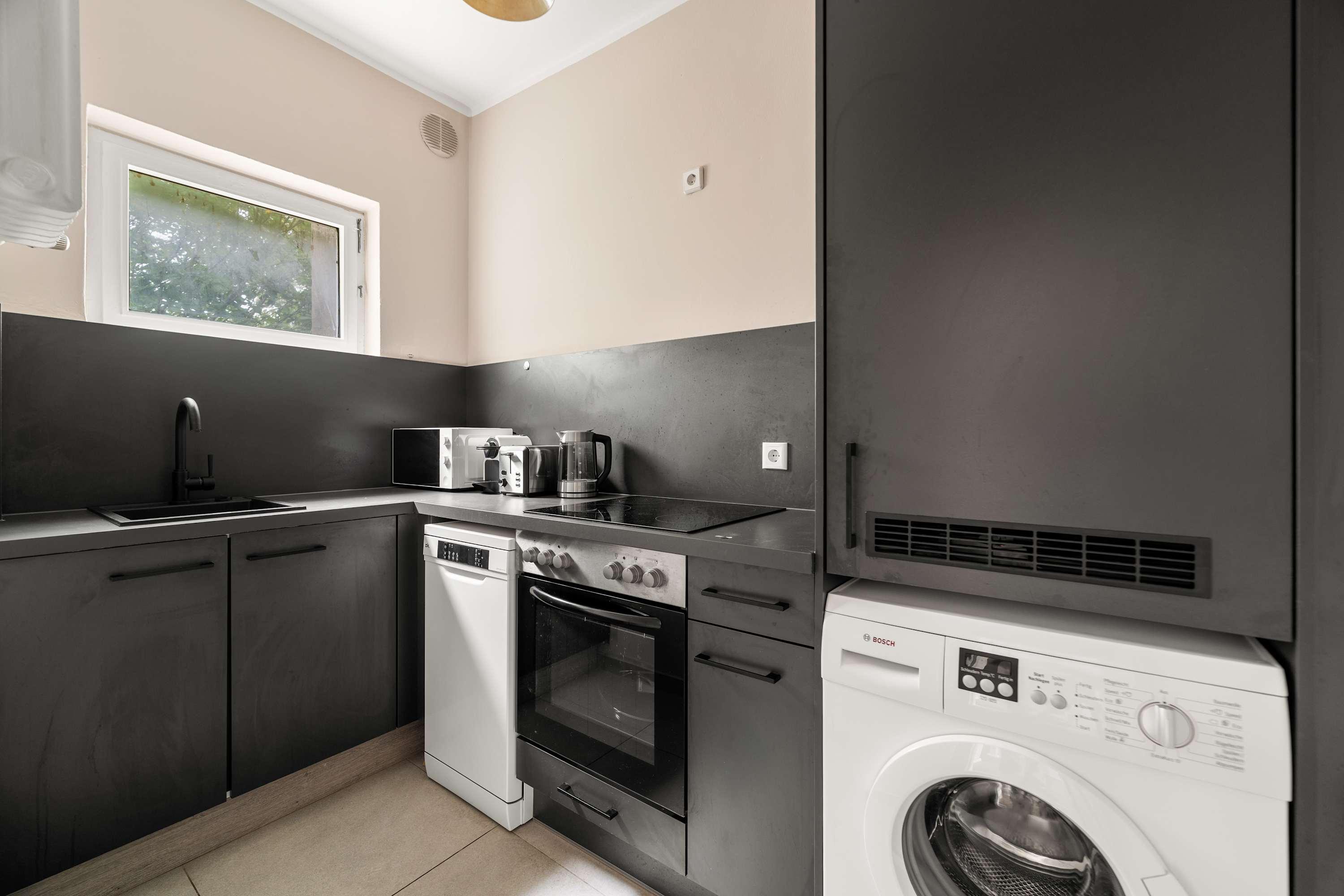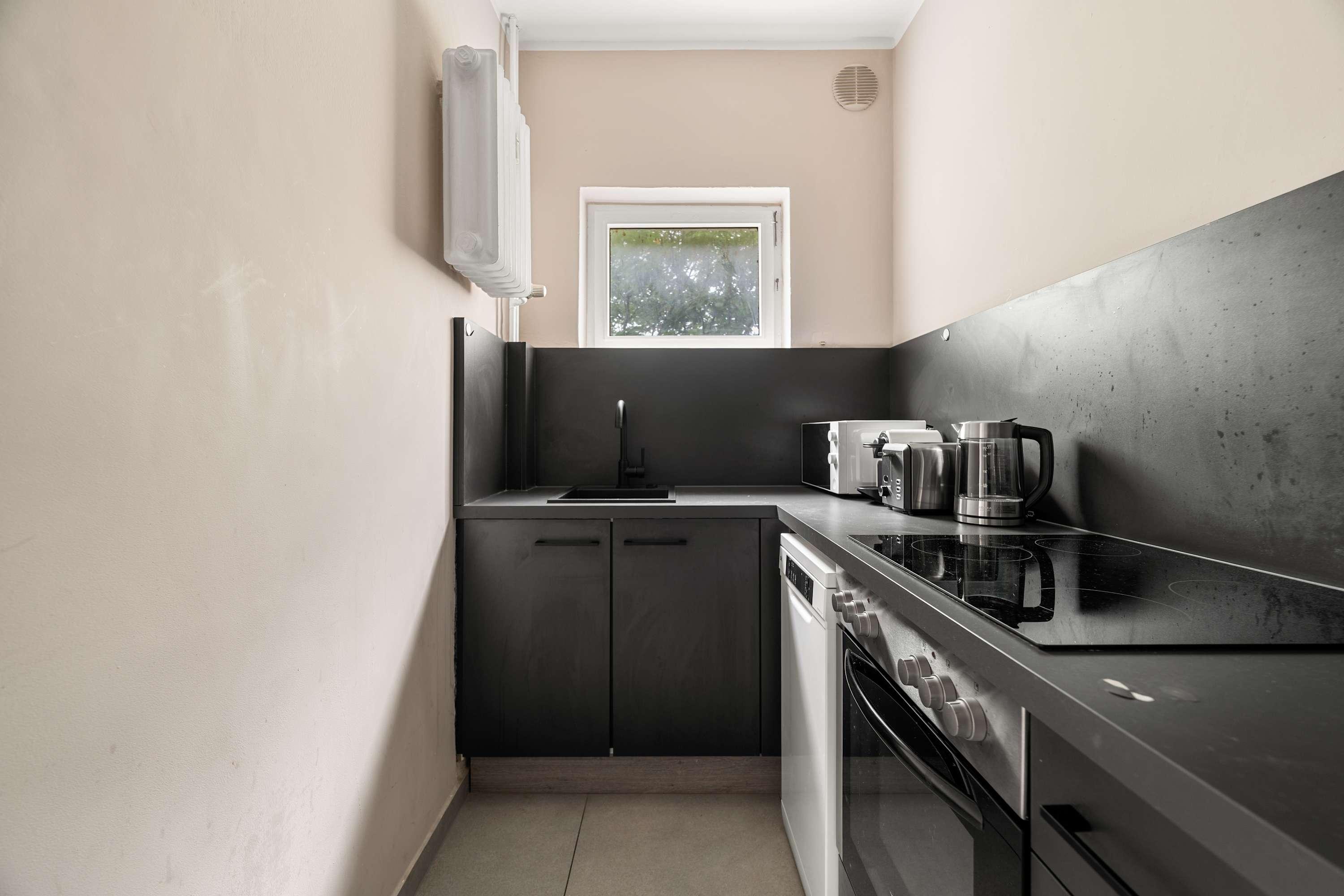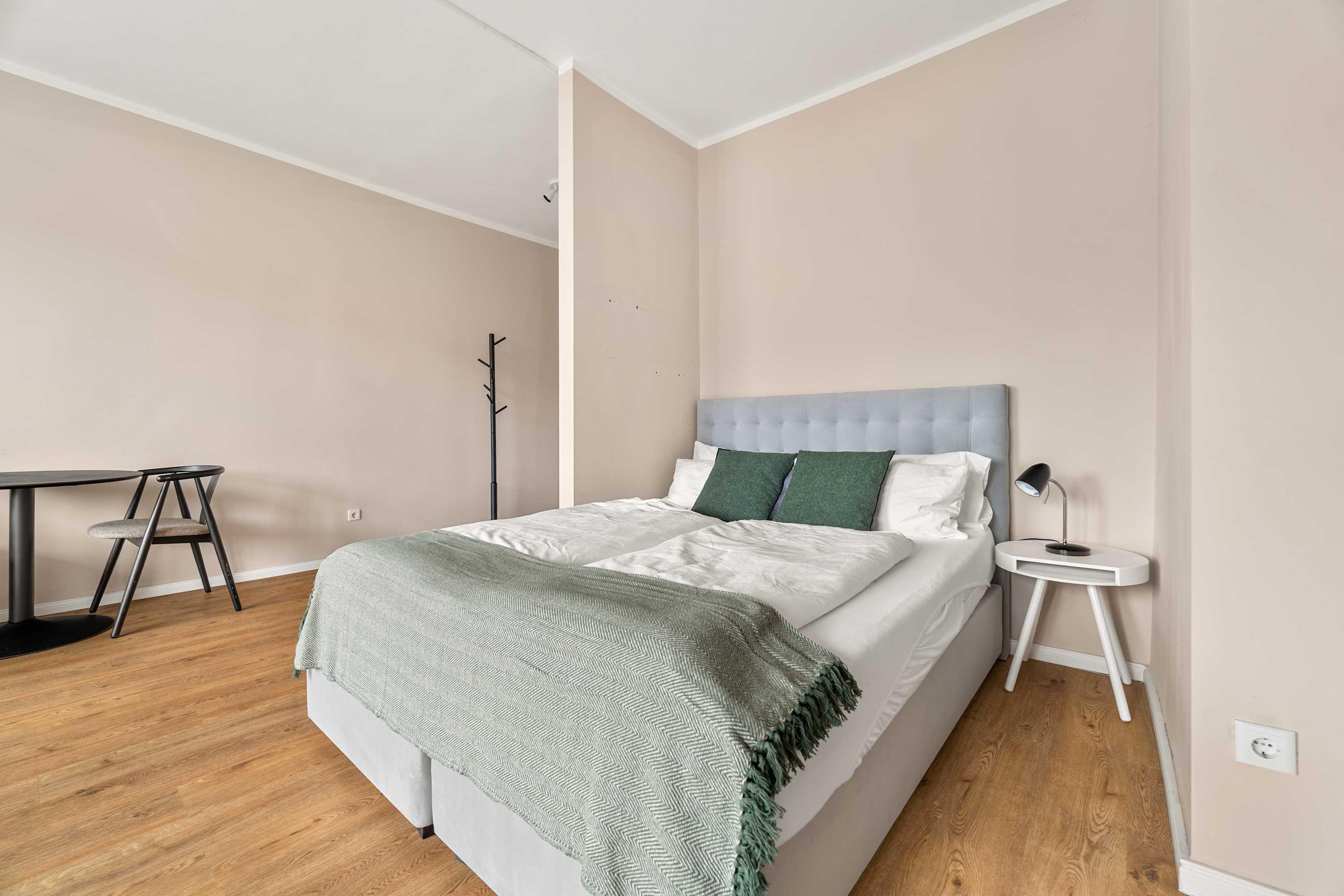 This stunning furnished studio apartment features contemporary design, a fully equipped kitchen, and a cozy living area with breathtaking views. Perfectly situated, you'll have easy access to everything that makes Berlin vibrant and exciting!