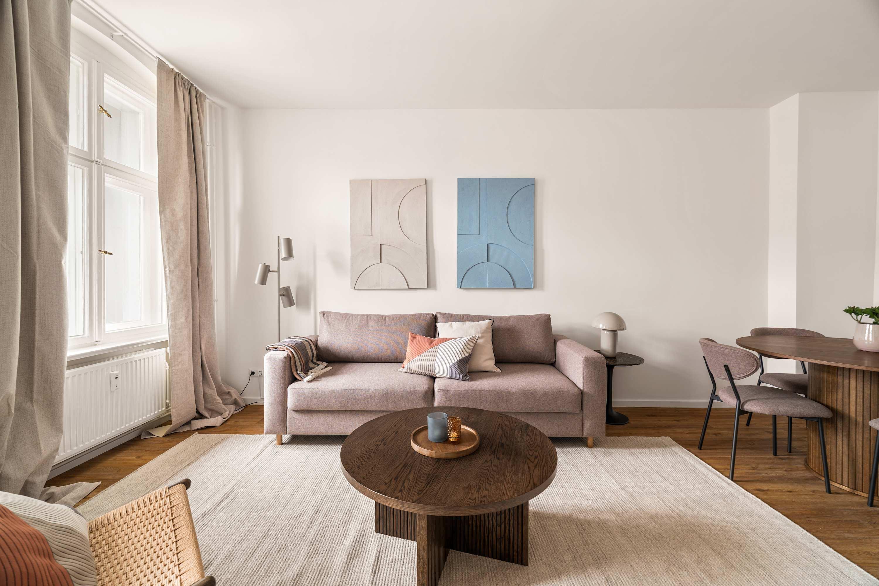 This stunning furnished one bedroom apartment features contemporary design, a fully equipped kitchen, and a cozy living area with breathtaking views. Perfectly situated, you'll have easy access to everything that makes Berlin vibrant and exciting!