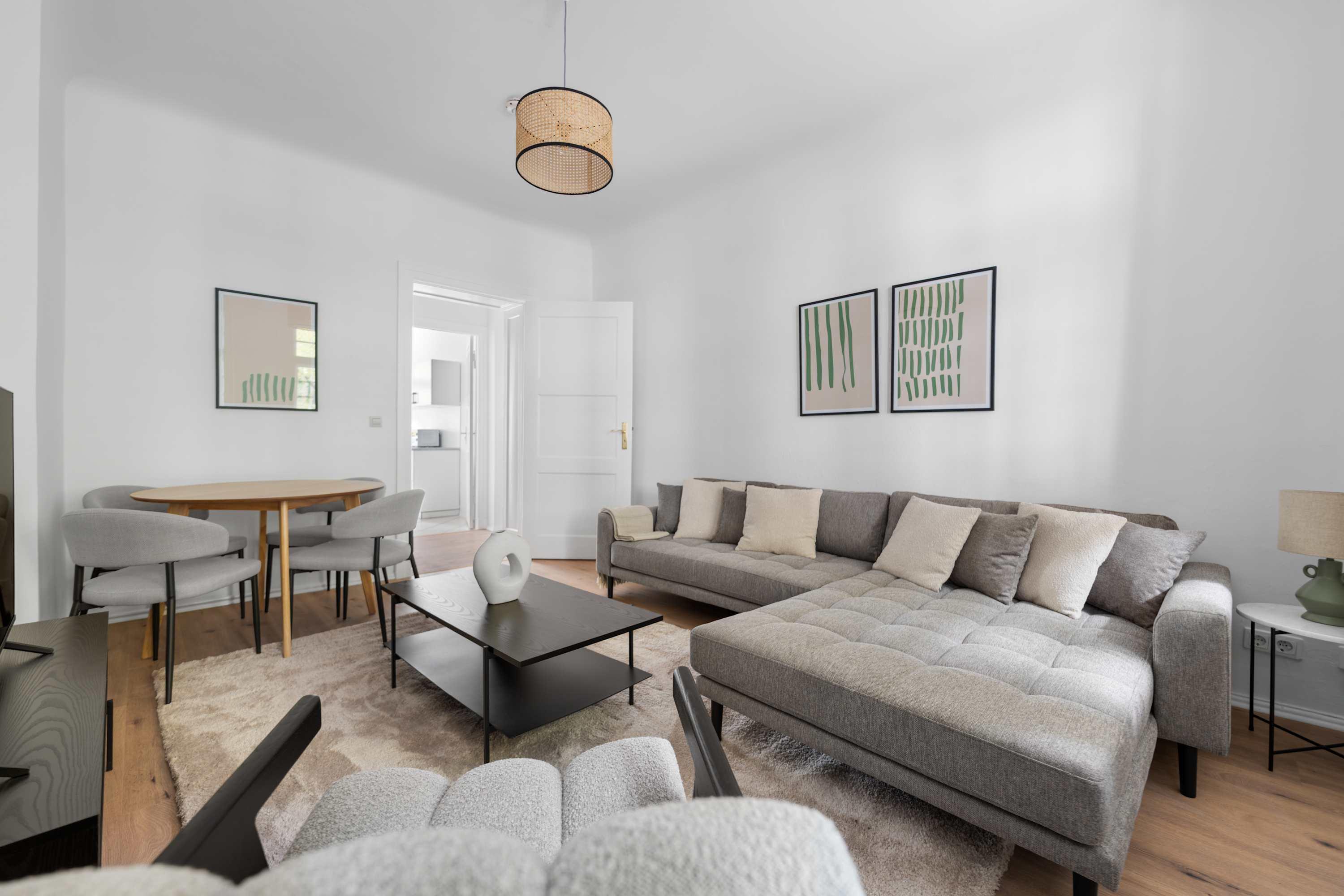 This stunning furnished two bedroom apartment features contemporary design, a fully equipped kitchen, and a cozy living area with breathtaking views. Perfectly situated, you'll have easy access to everything that makes Berlin vibrant and exciting!
