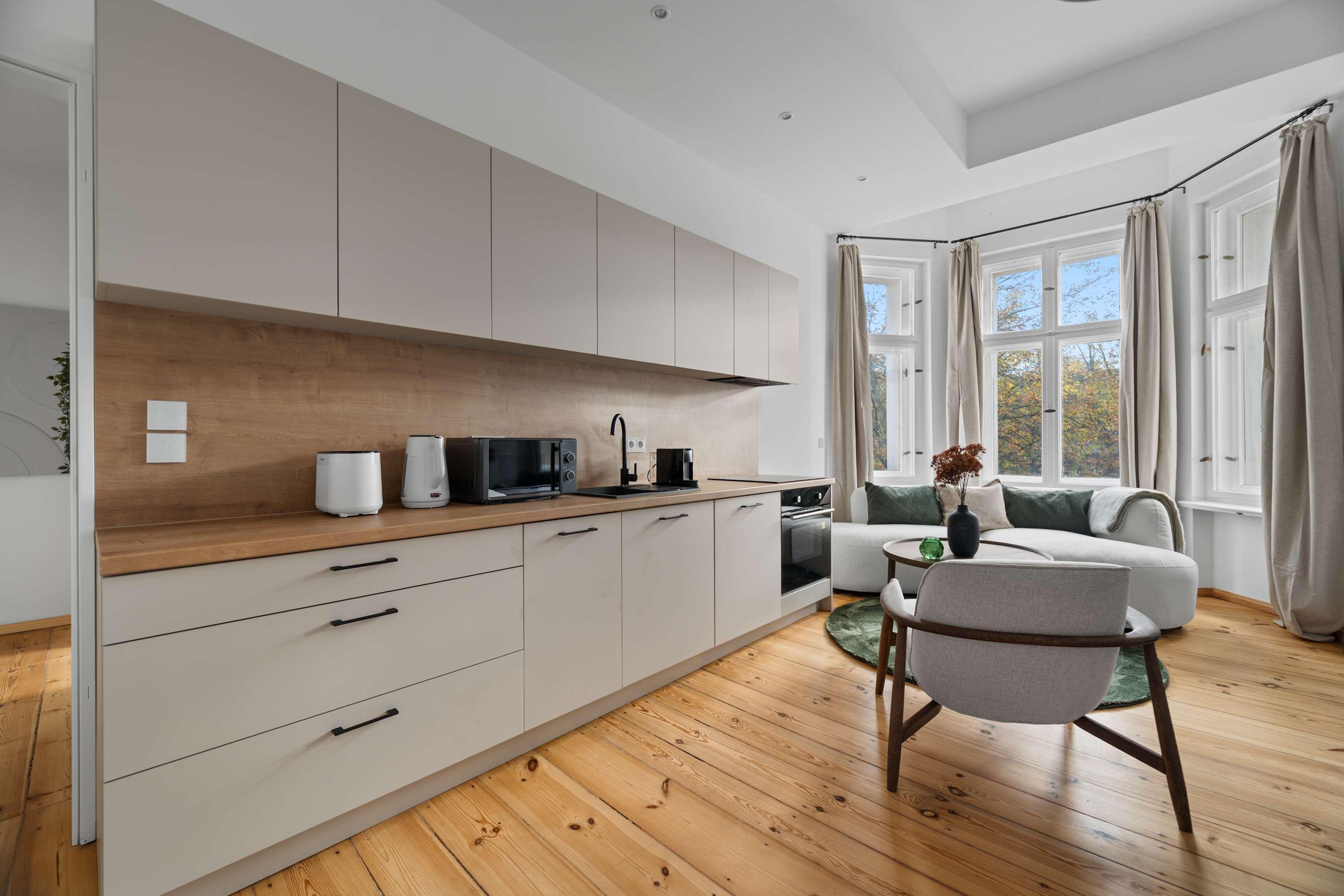This stunning furnished one bedroom apartment features contemporary design, a fully equipped kitchen, and a cozy living area with breathtaking views. Perfectly situated, you'll have easy access to everything that makes Berlin vibrant and exciting!