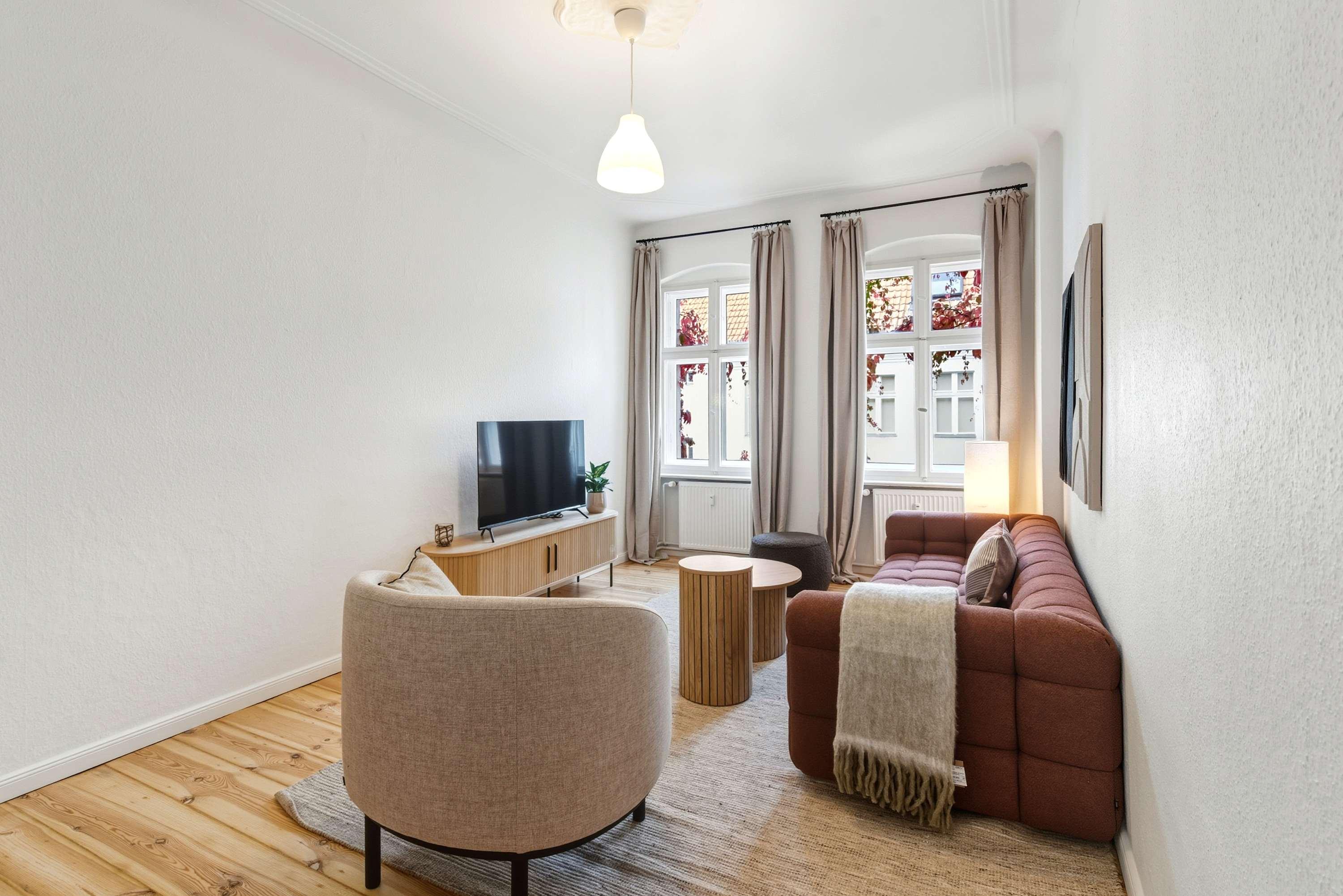 This stunning furnished one bedroom apartment features contemporary design, a fully equipped kitchen, and a cozy living area with breathtaking views. Perfectly situated, you'll have easy access to everything that makes Berlin vibrant and exciting!