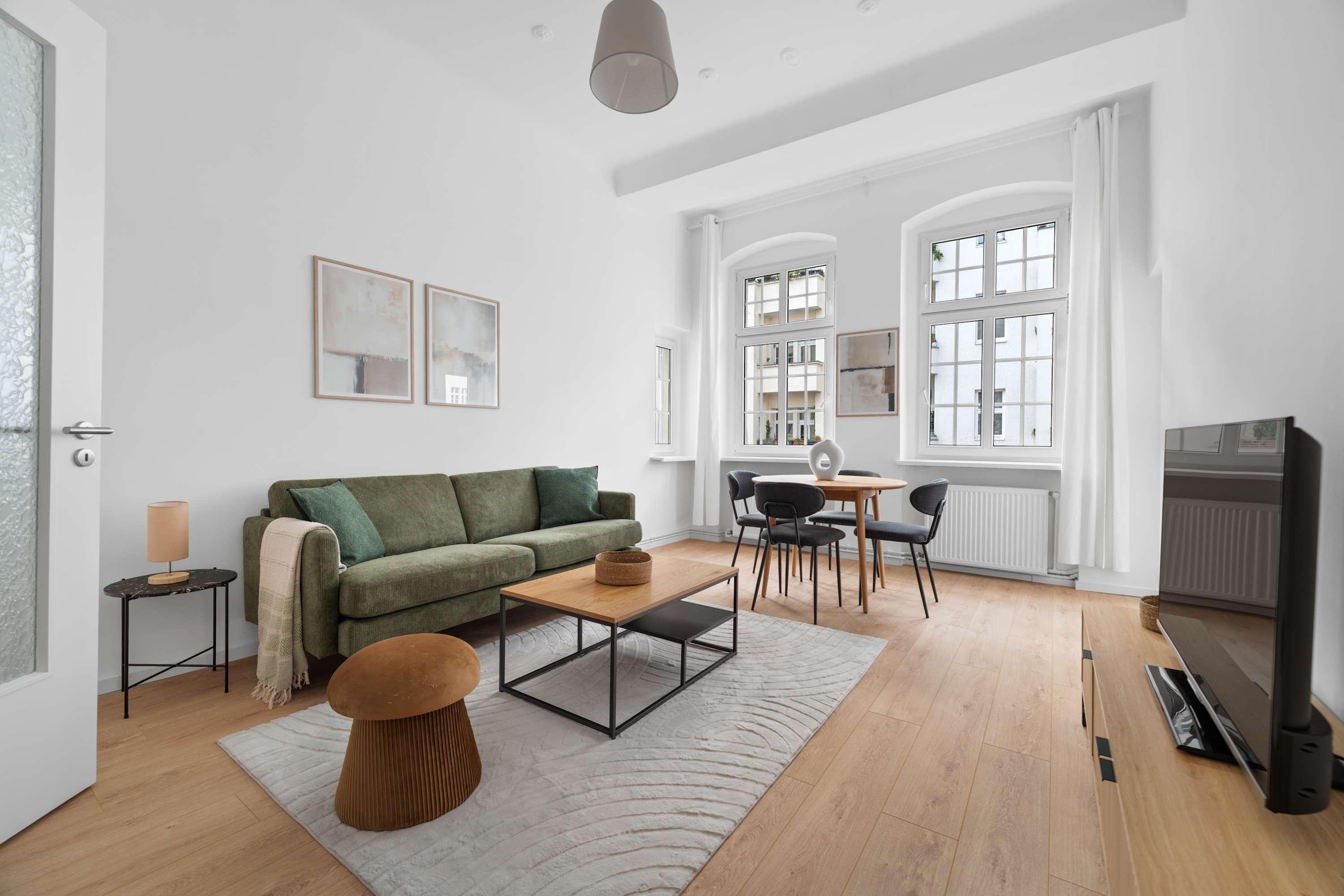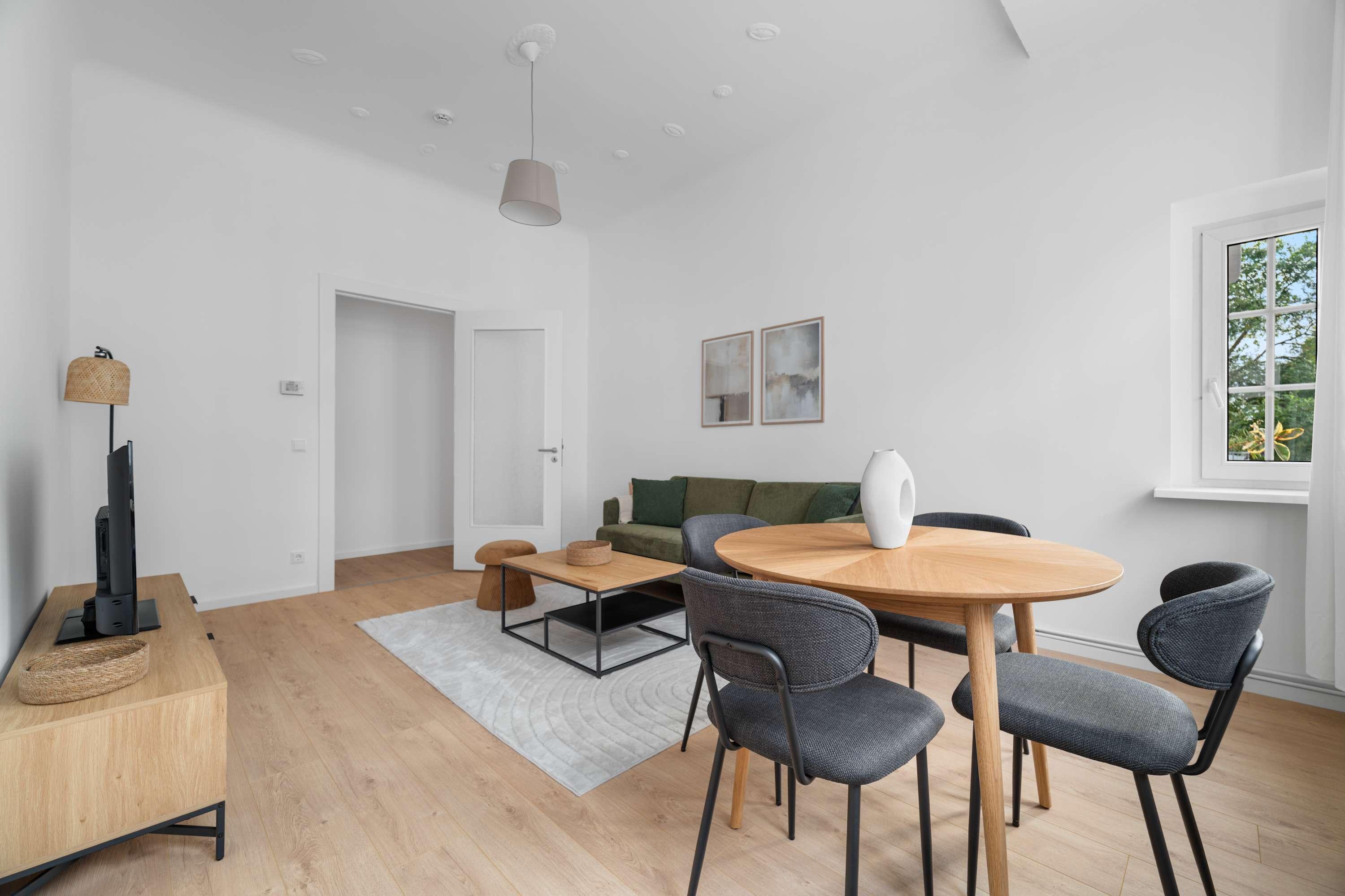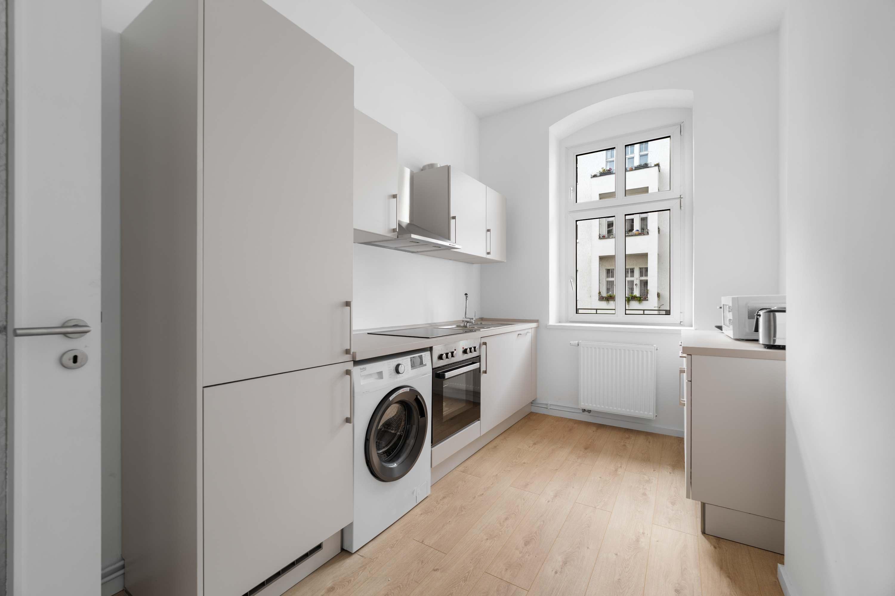 This stunning furnished one bedroom apartment features contemporary design, a fully equipped kitchen, and a cozy living area with breathtaking views. Perfectly situated, you'll have easy access to everything that makes Berlin vibrant and exciting!