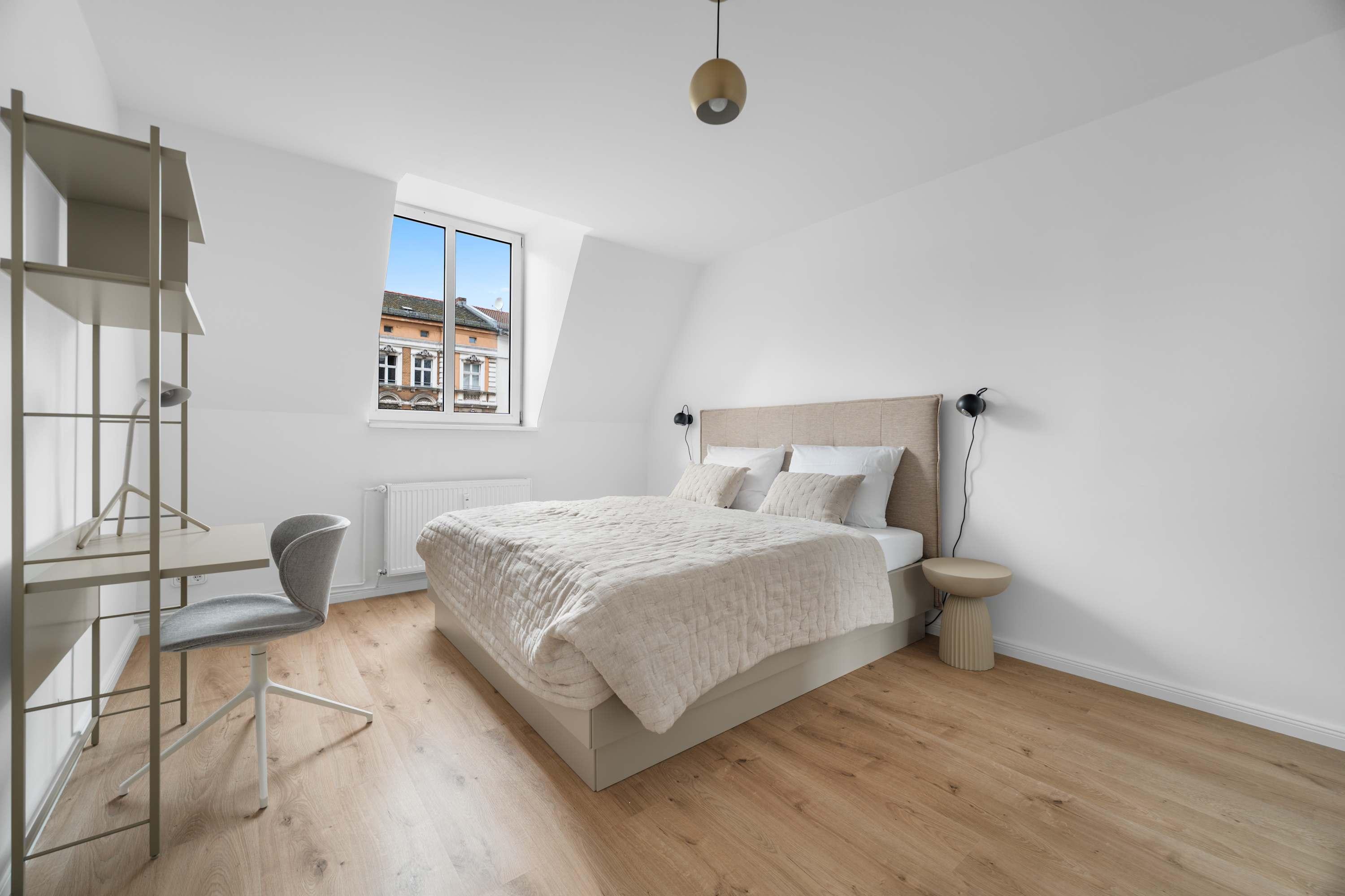 This stunning furnished two bedroom apartment features contemporary design, a fully equipped kitchen, and a cozy living area with breathtaking views. Perfectly situated, you'll have easy access to everything that makes Berlin vibrant and exciting!