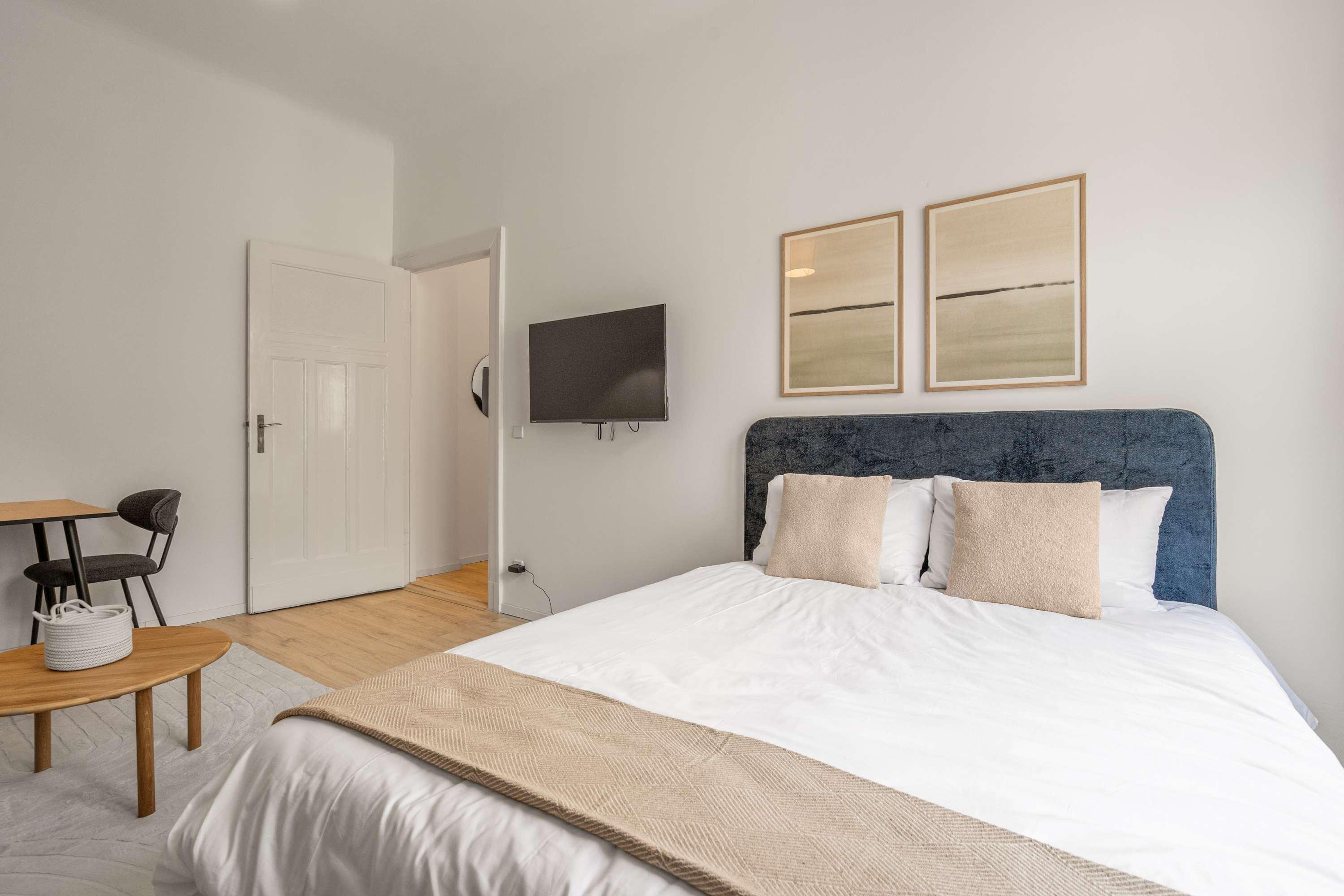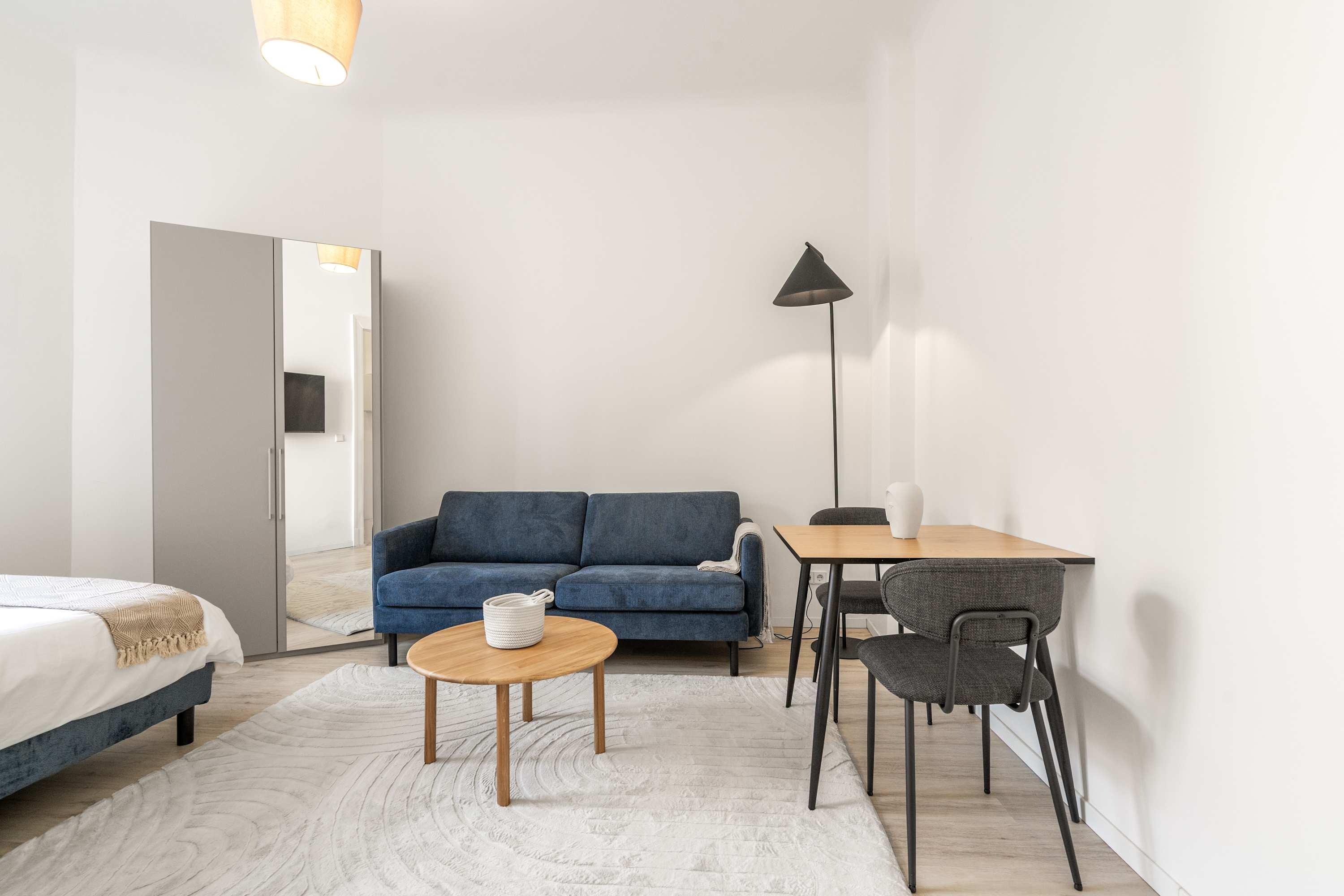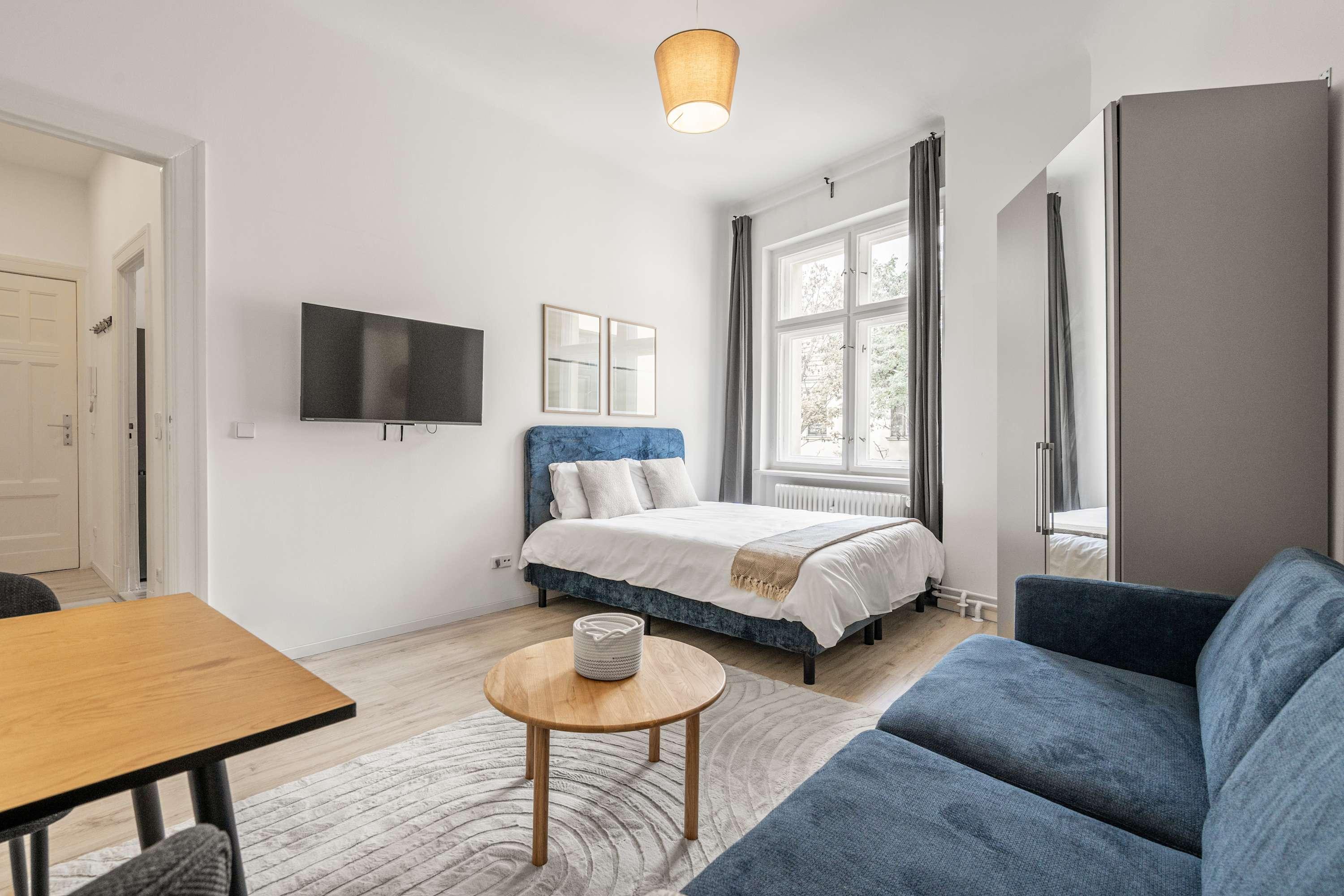 This stunning furnished studio apartment features contemporary design, a fully equipped kitchen, and a cozy living area with breathtaking views. Perfectly situated, you'll have easy access to everything that makes Berlin vibrant and exciting!