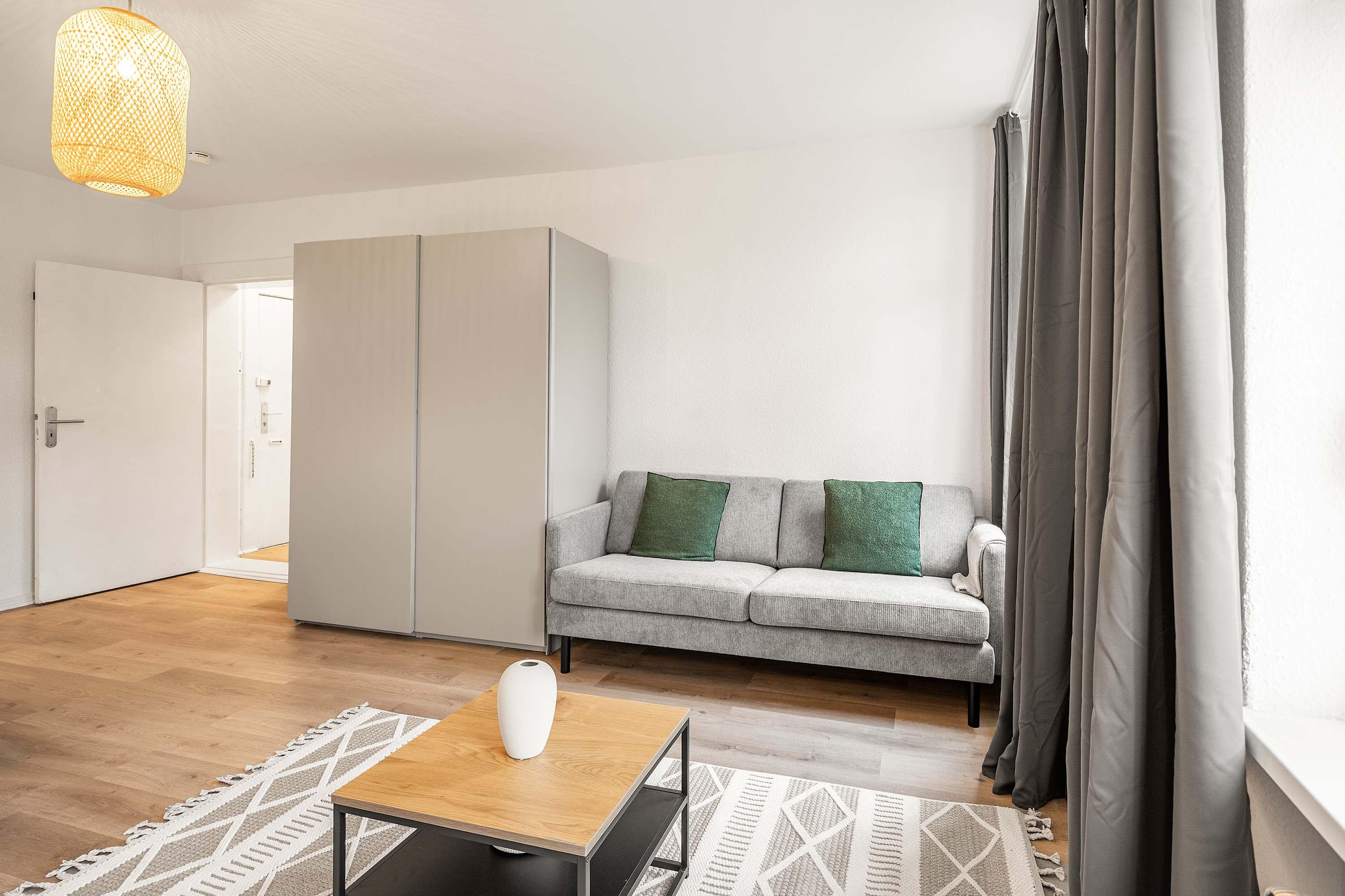 This stunning furnished studio apartment features contemporary design, a fully equipped kitchen, and a cozy living area with breathtaking views. Perfectly situated, you'll have easy access to everything that makes Berlin vibrant and exciting!