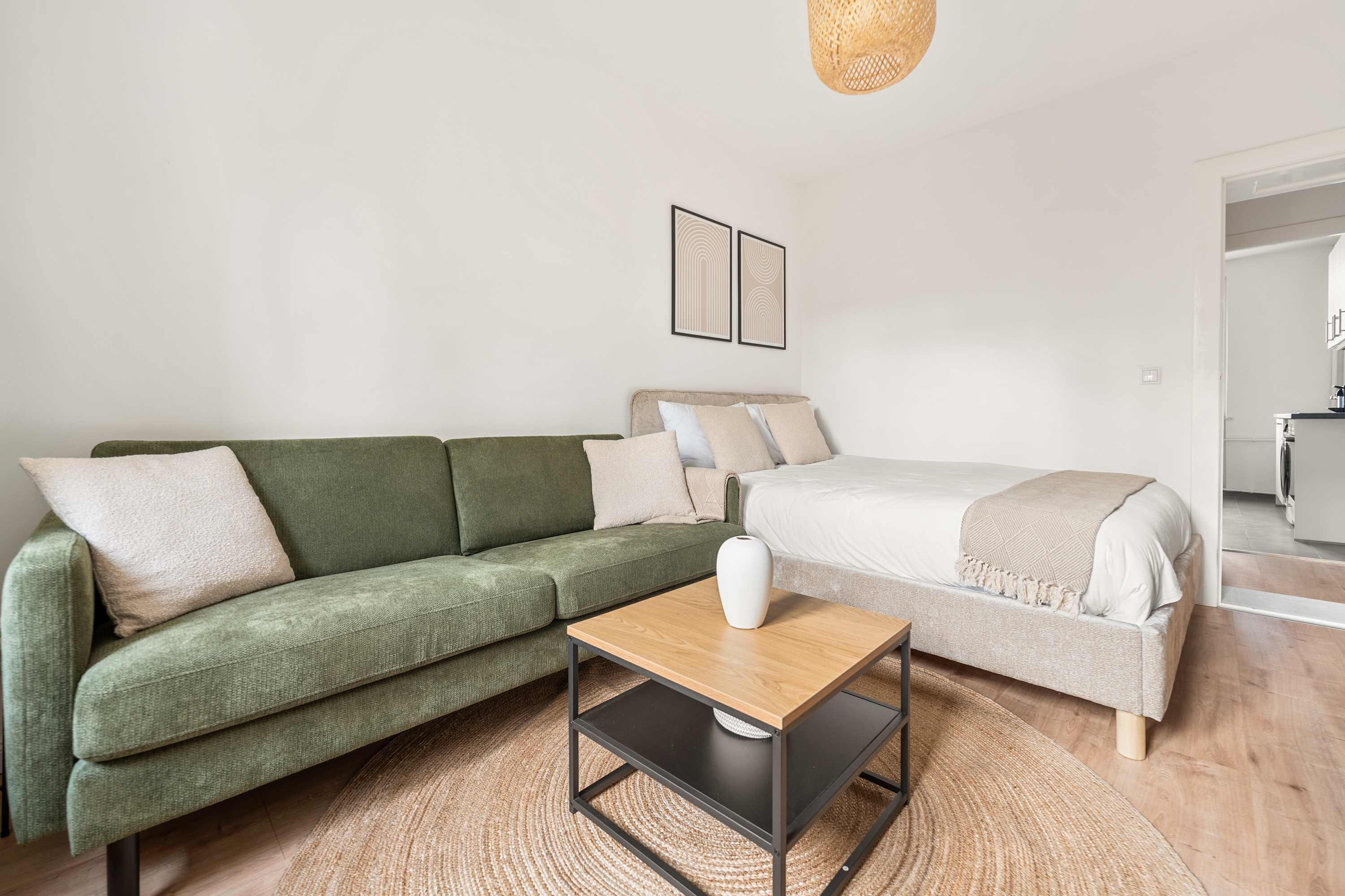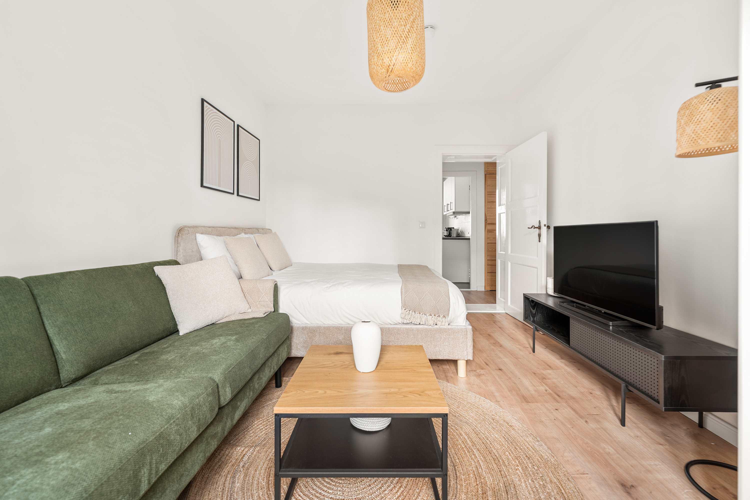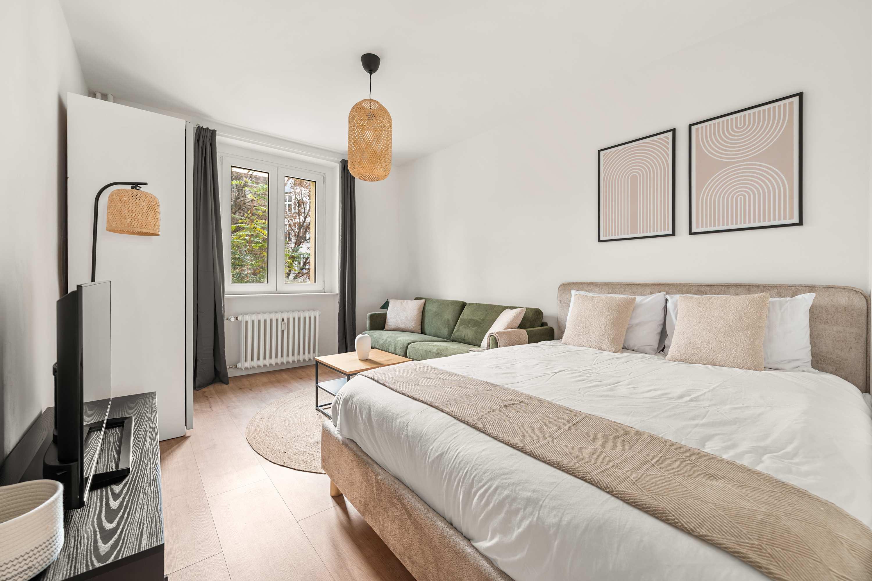 This stunning furnished studio apartment features contemporary design, a fully equipped kitchen, and a cozy living area with breathtaking views. Perfectly situated, you'll have easy access to everything that makes Berlin vibrant and exciting!