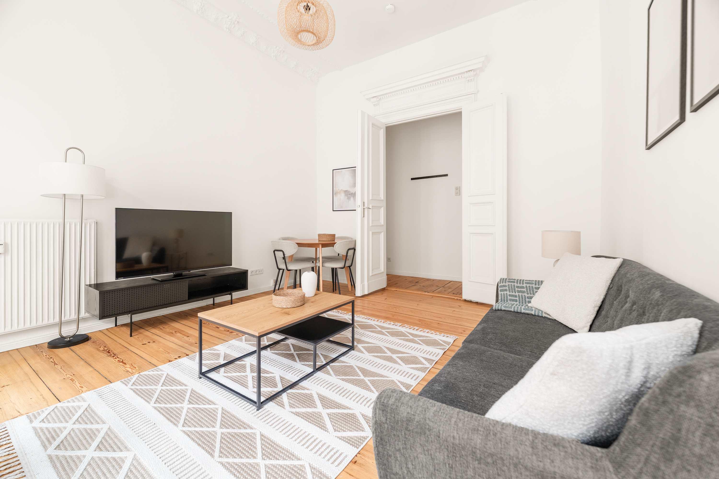 This stunning furnished one bedroom apartment features contemporary design, a fully equipped kitchen, and a cozy living area with breathtaking views. Perfectly situated, you'll have easy access to everything that makes Berlin vibrant and exciting!
