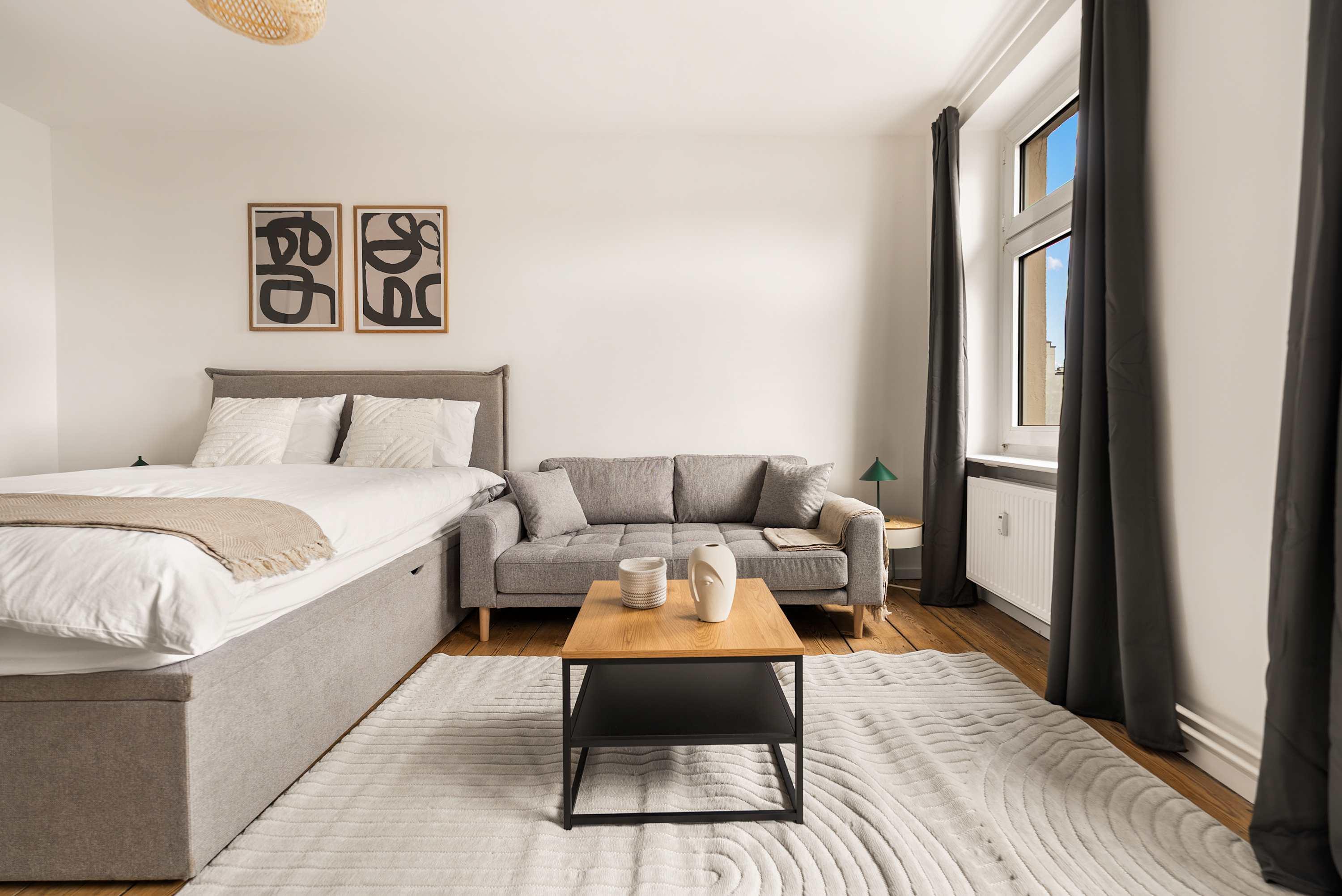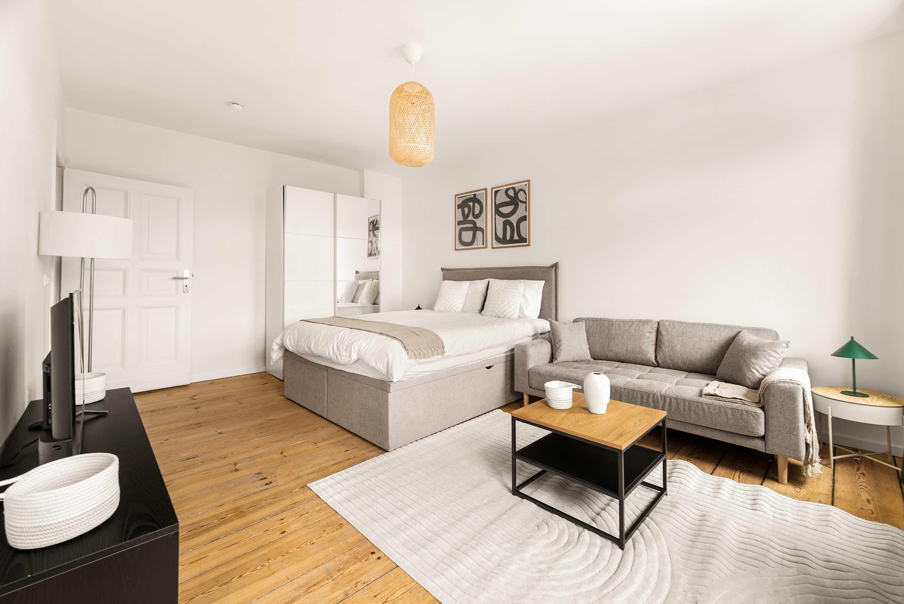This stunning furnished studio apartment features contemporary design, a fully equipped kitchen, and a cozy living area with breathtaking views. Perfectly situated, you'll have easy access to everything that makes Berlin vibrant and exciting!