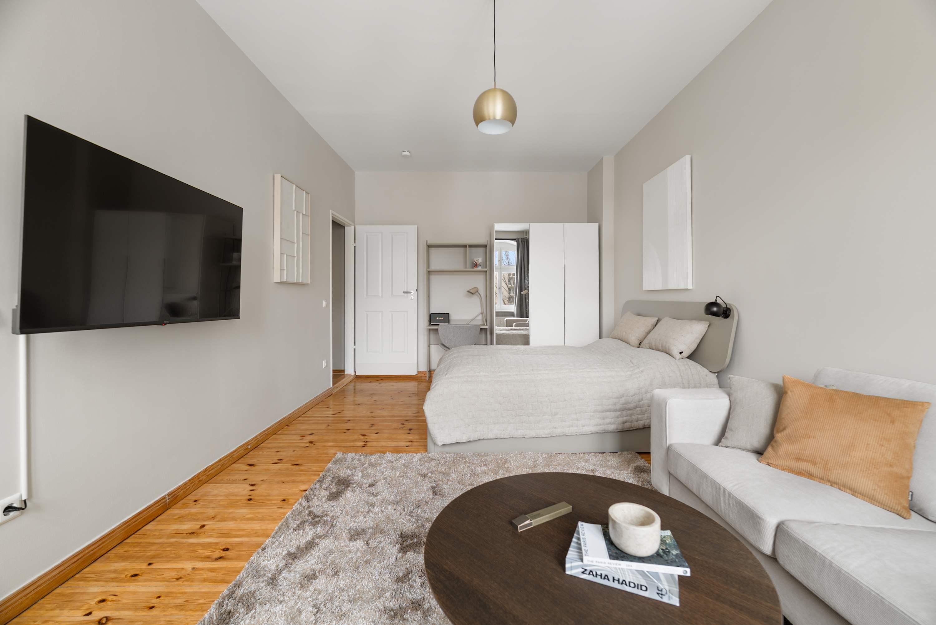 This stunning furnished studio apartment features contemporary design, a fully equipped kitchen, and a cozy living area with breathtaking views. Perfectly situated, you'll have easy access to everything that makes Berlin vibrant and exciting!