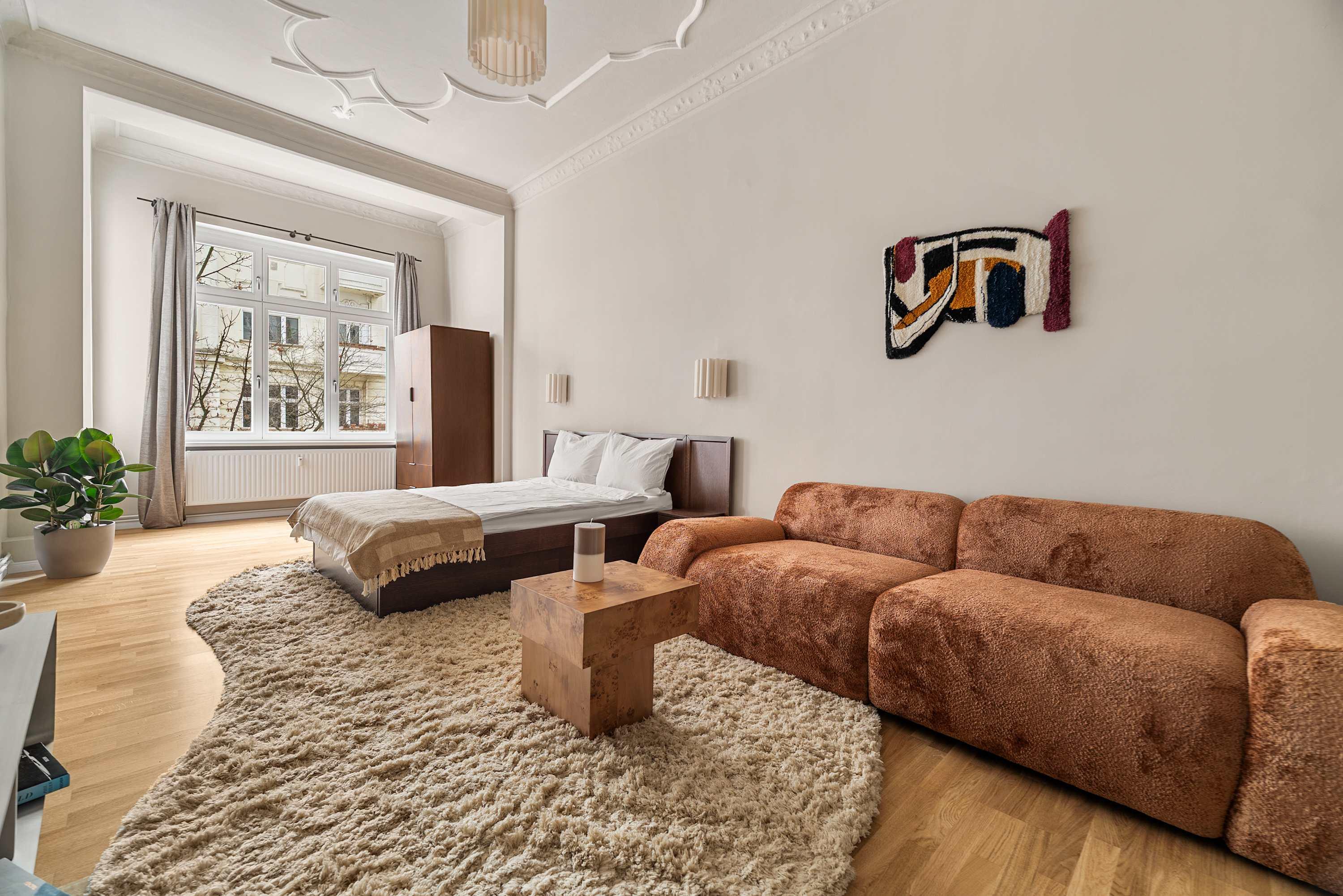 This stunning furnished one bedroom apartment features contemporary design, a fully equipped kitchen, and a cozy living area with breathtaking views. Perfectly situated, you'll have easy access to everything that makes Berlin vibrant and exciting!