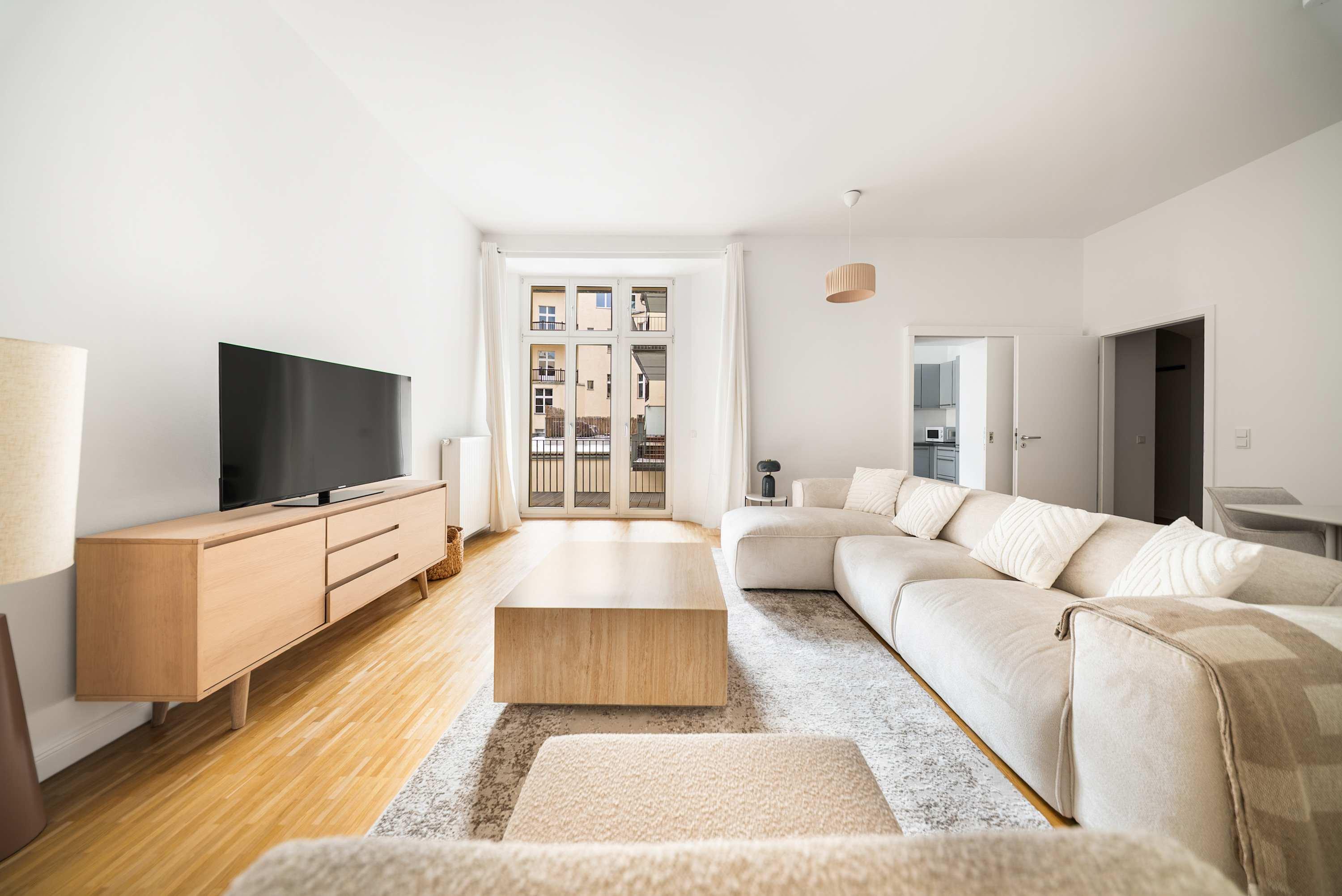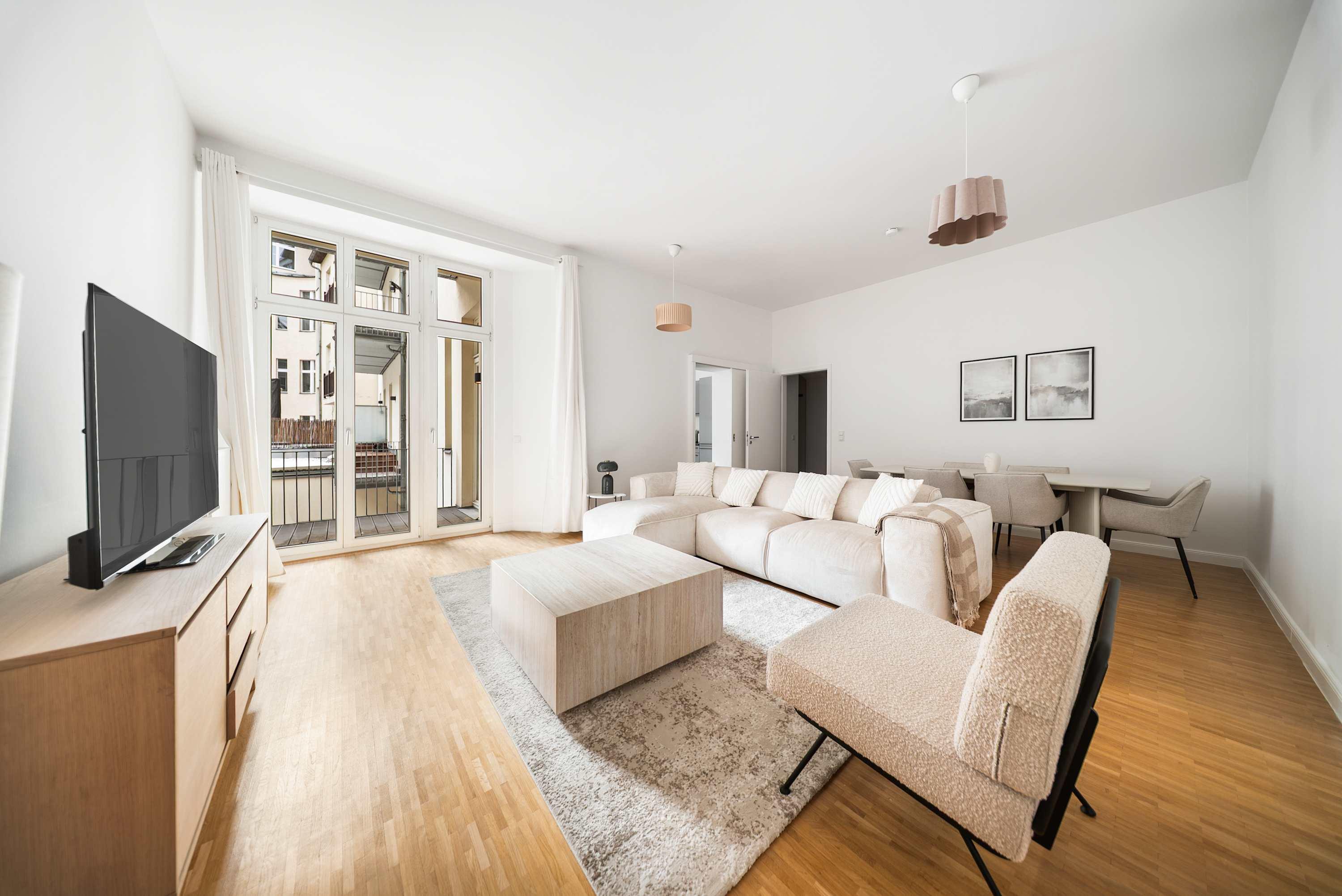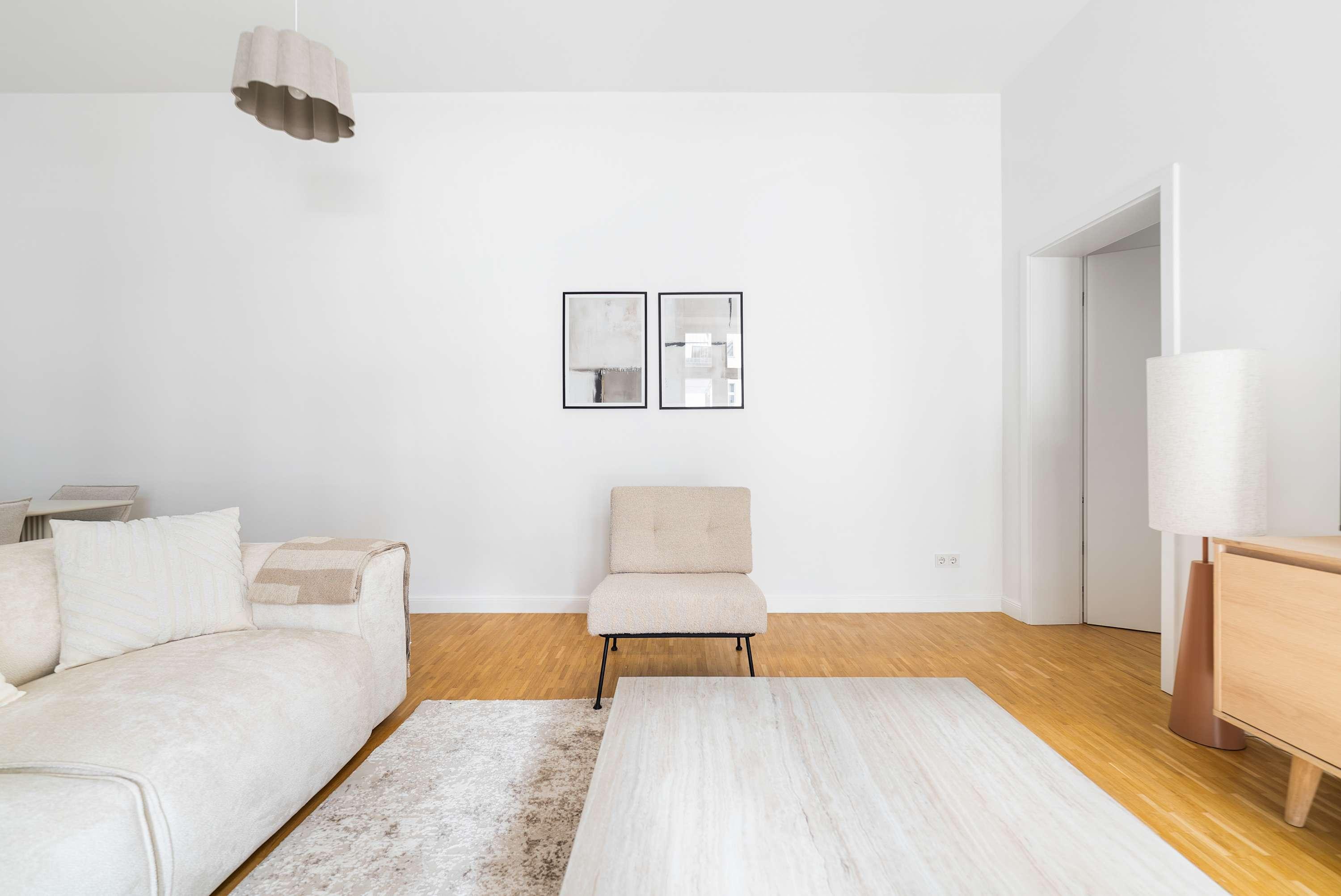 This stunning furnished two bedroom apartment features contemporary design, a fully equipped kitchen, and a cozy living area with breathtaking views. Perfectly situated, you'll have easy access to everything that makes Berlin vibrant and exciting!