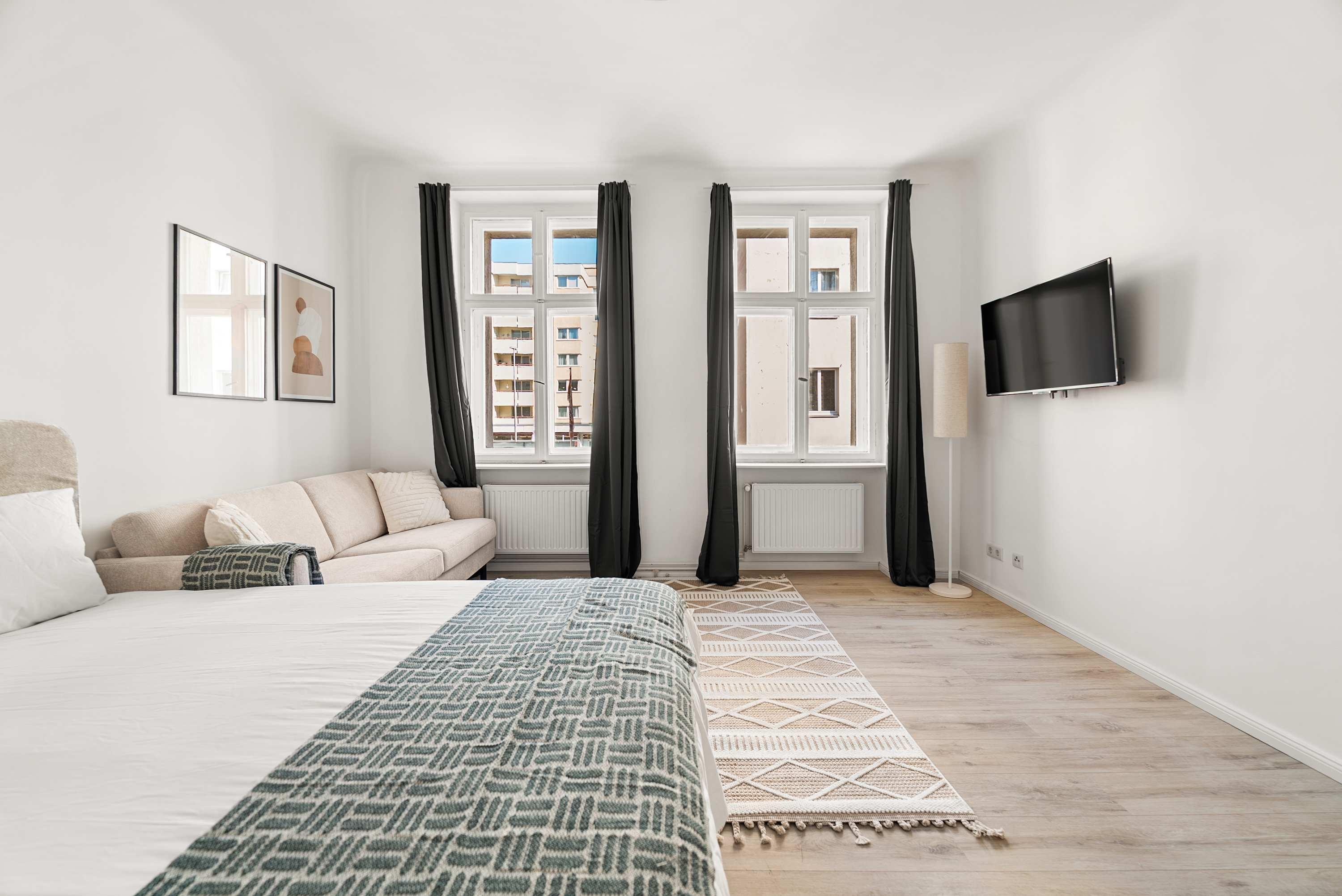 This stunning furnished studio apartment features contemporary design, a fully equipped kitchen, and a cozy living area with breathtaking views. Perfectly situated, you'll have easy access to everything that makes Berlin vibrant and exciting!