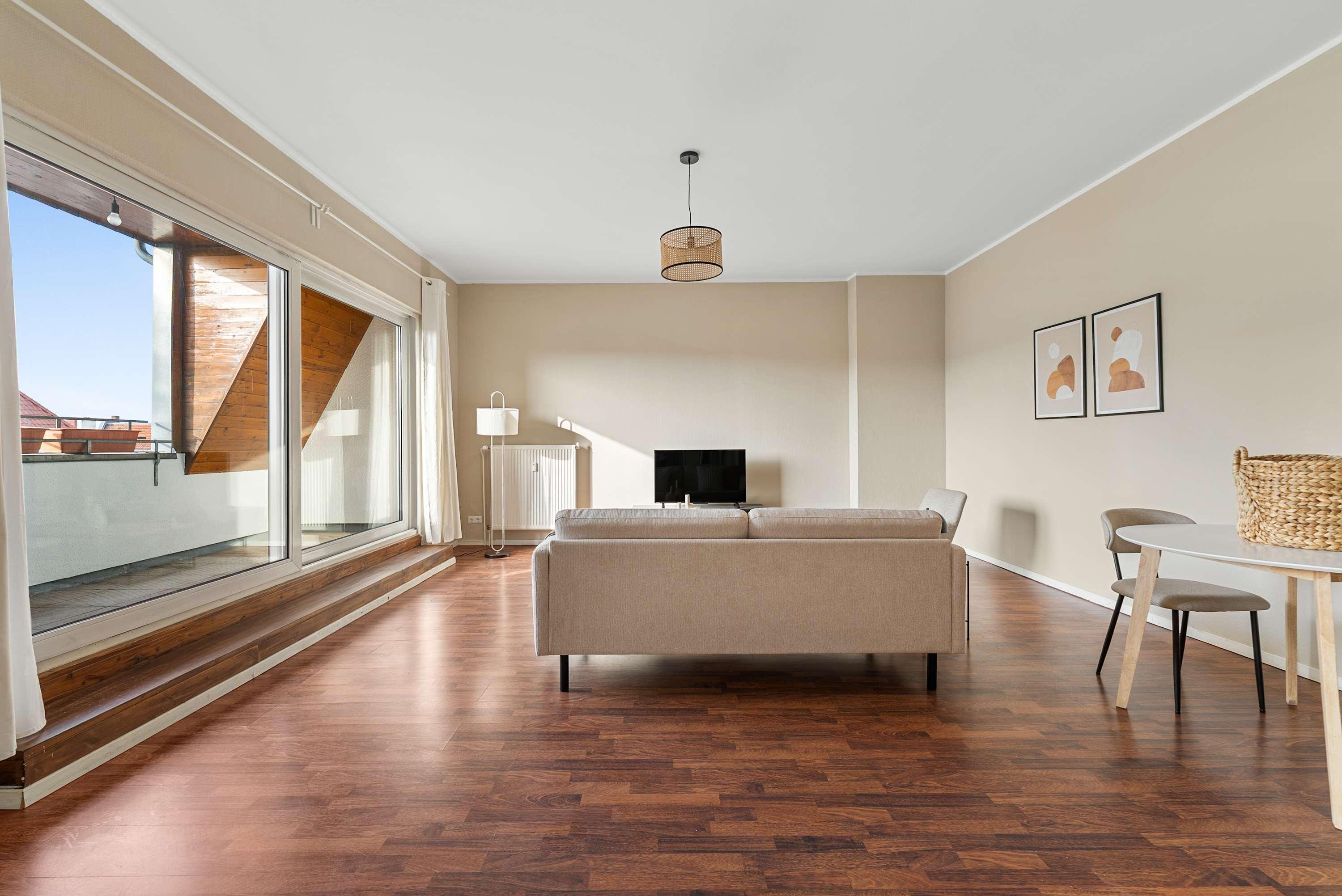 This stunning furnished one bedroom apartment features contemporary design, a fully equipped kitchen, and a cozy living area with breathtaking views. Perfectly situated, you'll have easy access to everything that makes Berlin vibrant and exciting!
