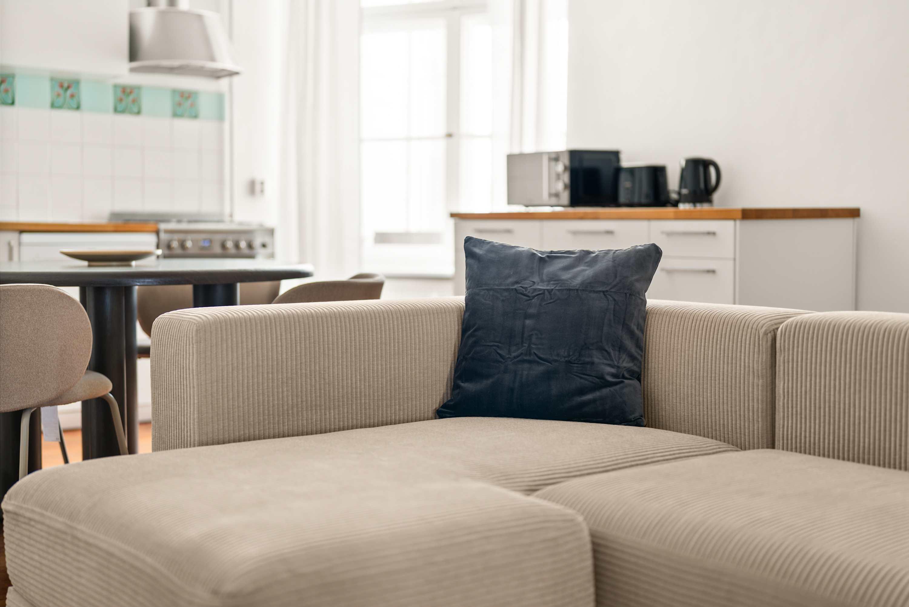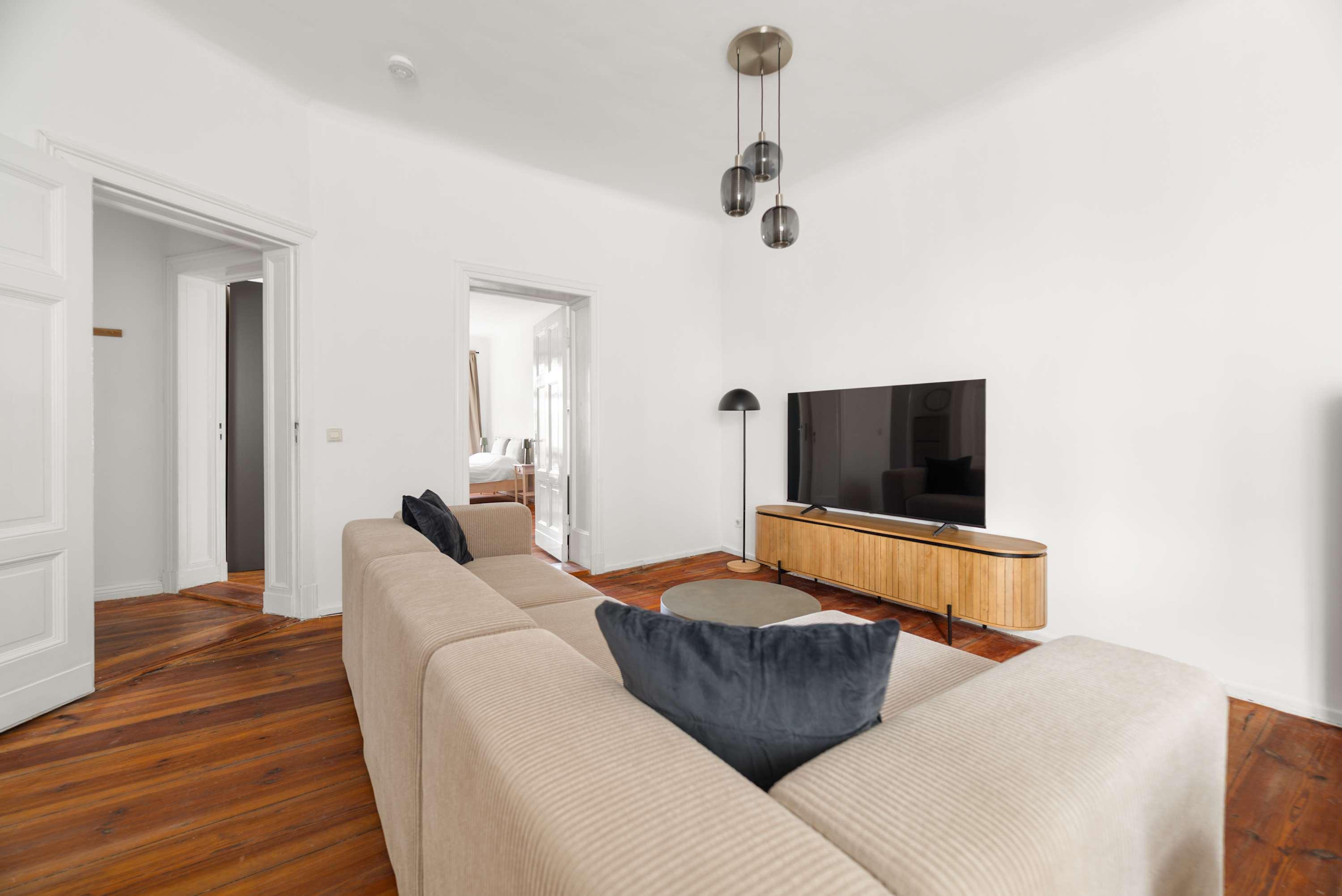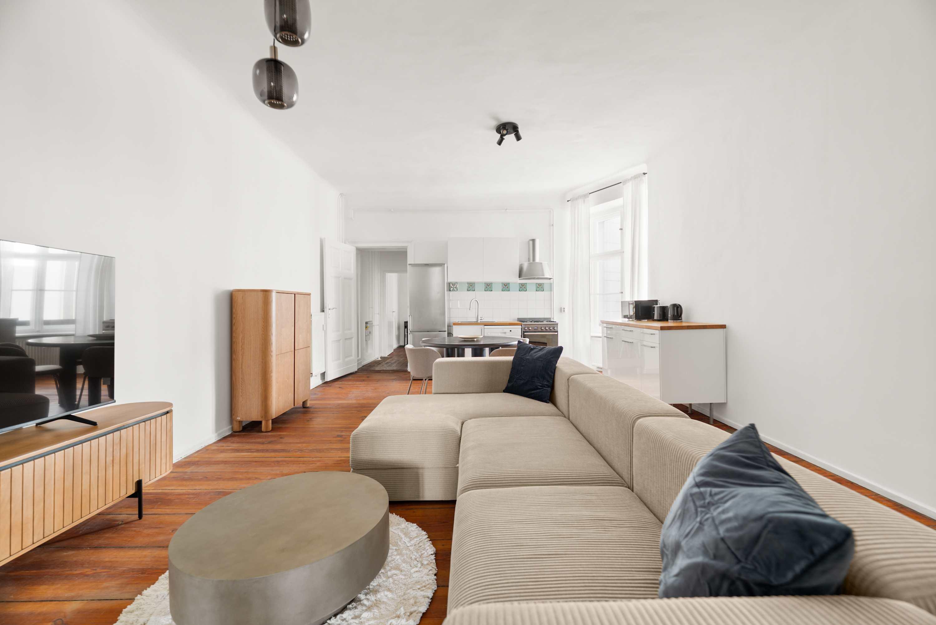 This stunning furnished three bedroom apartment features contemporary design, a fully equipped kitchen, and a cozy living area with breathtaking views. Perfectly situated, you'll have easy access to everything that makes Berlin vibrant and exciting!