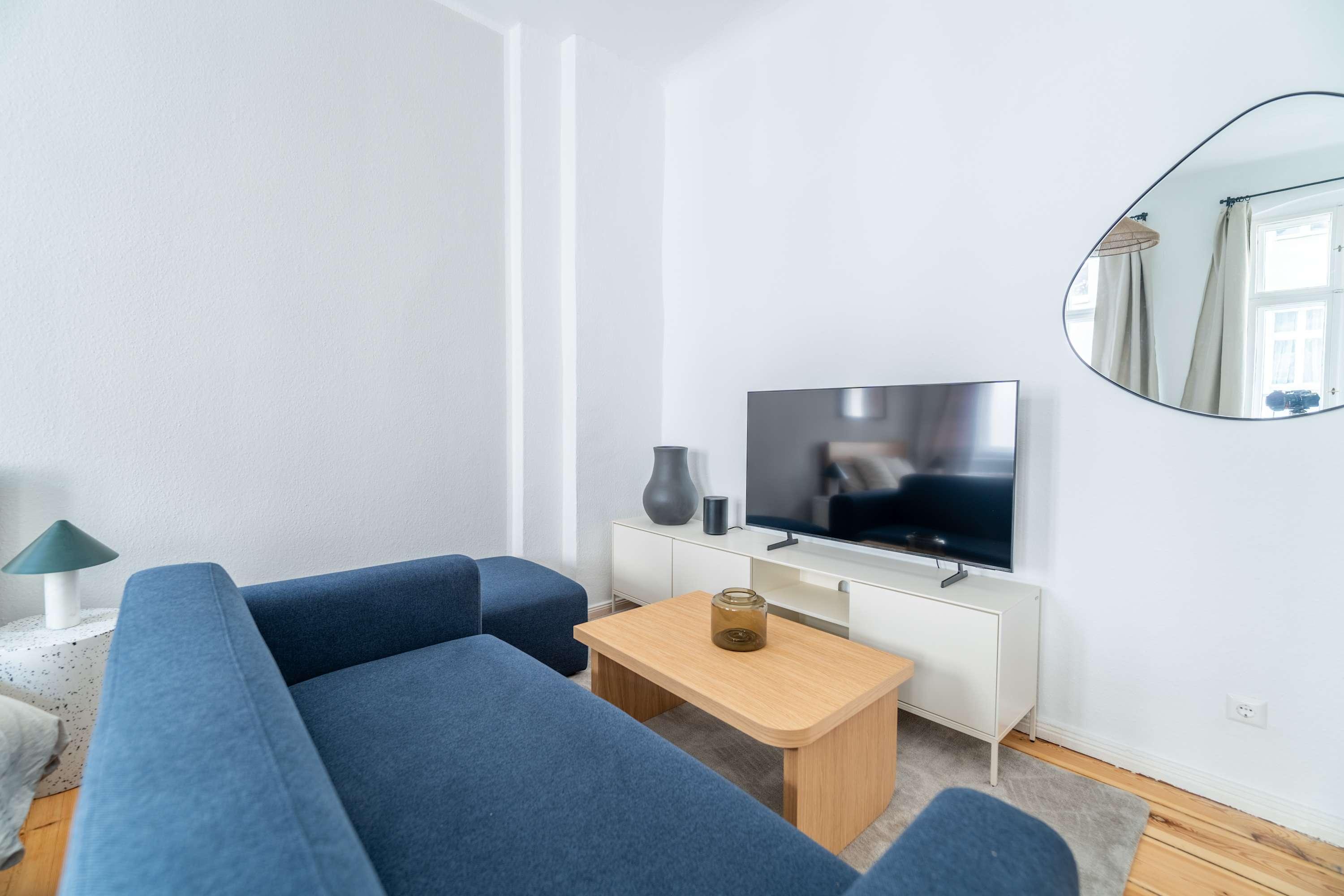 This stunning furnished studio apartment features contemporary design, a fully equipped kitchen, and a cozy living area with breathtaking views. Perfectly situated, you'll have easy access to everything that makes Berlin vibrant and exciting!