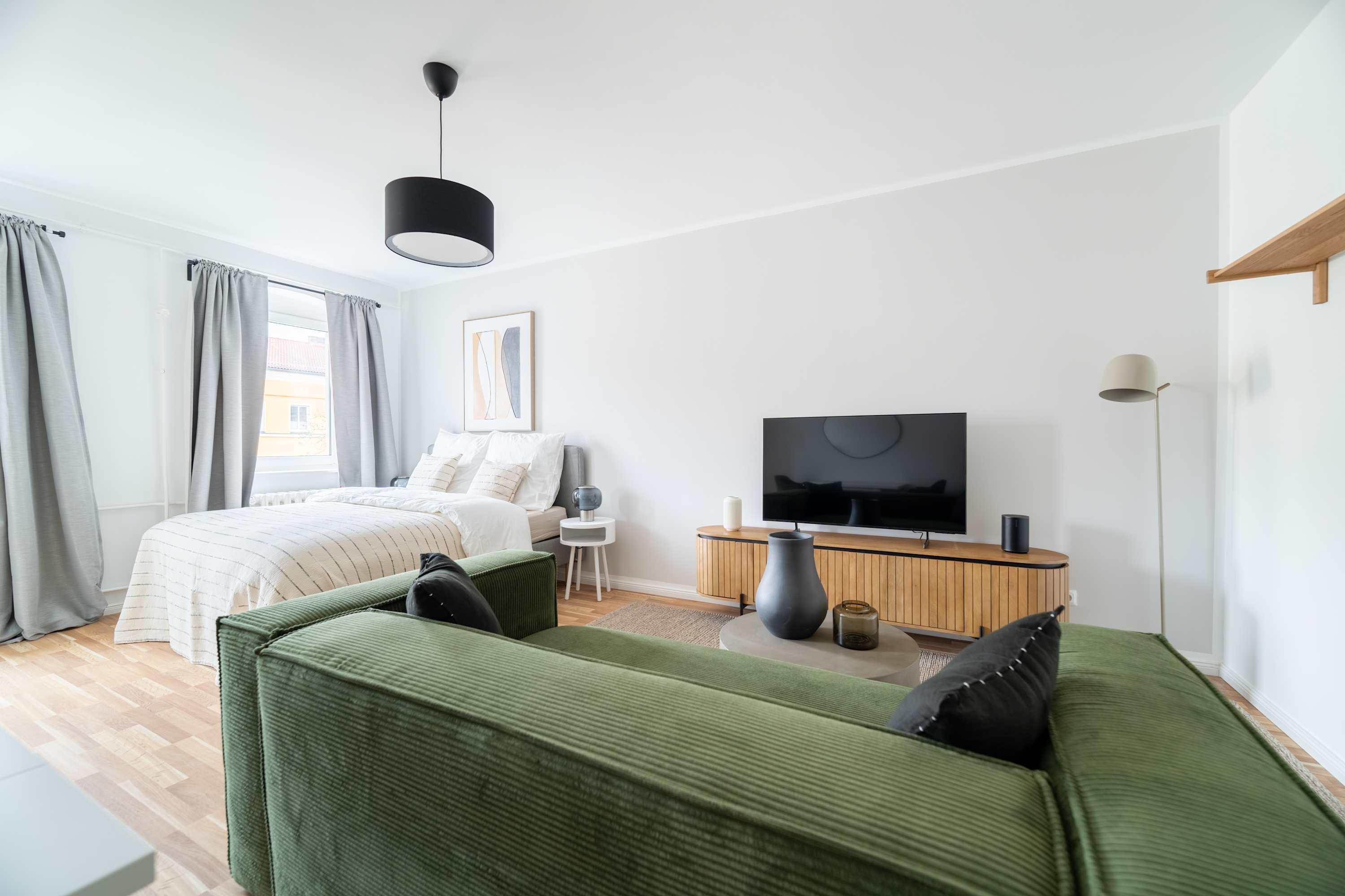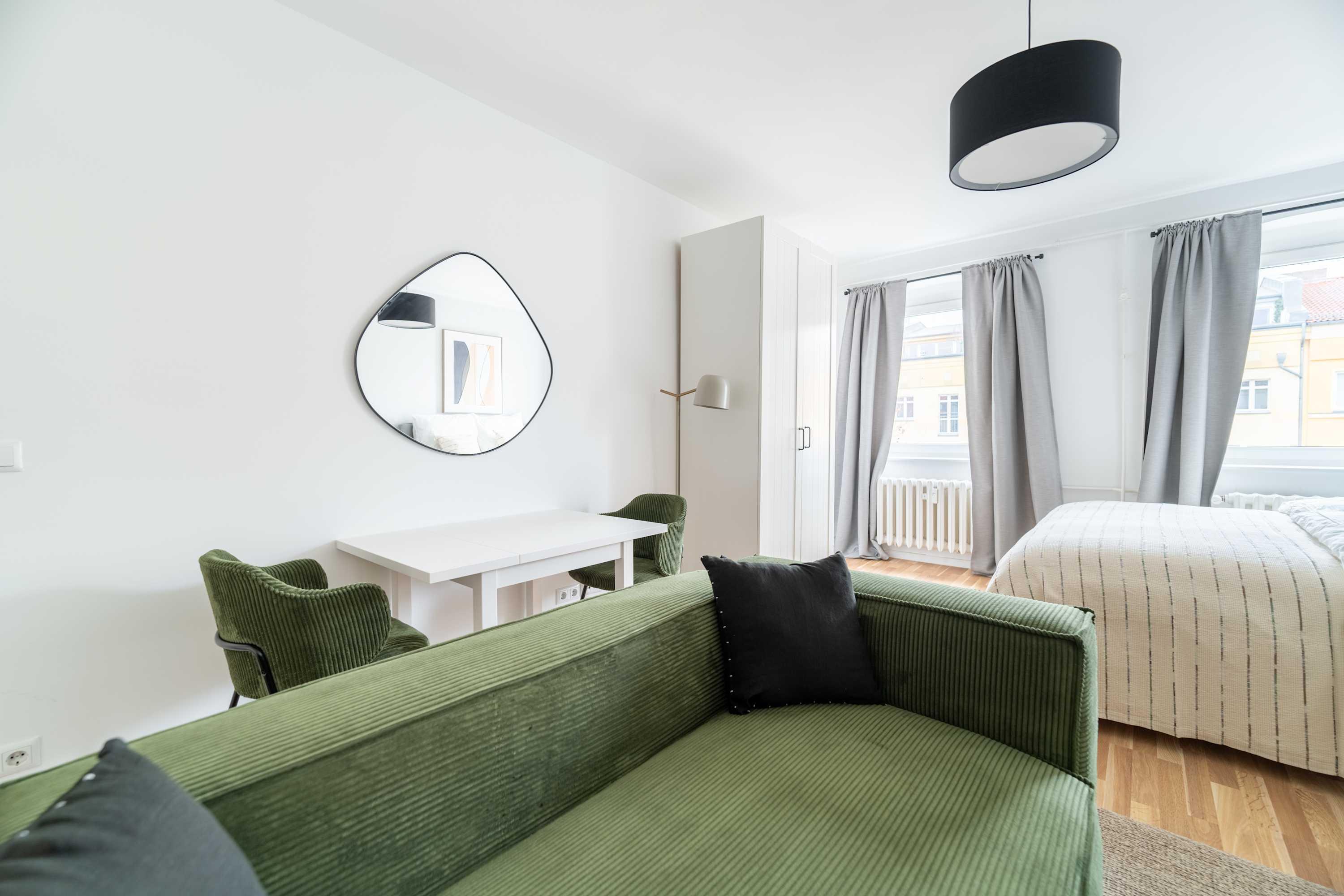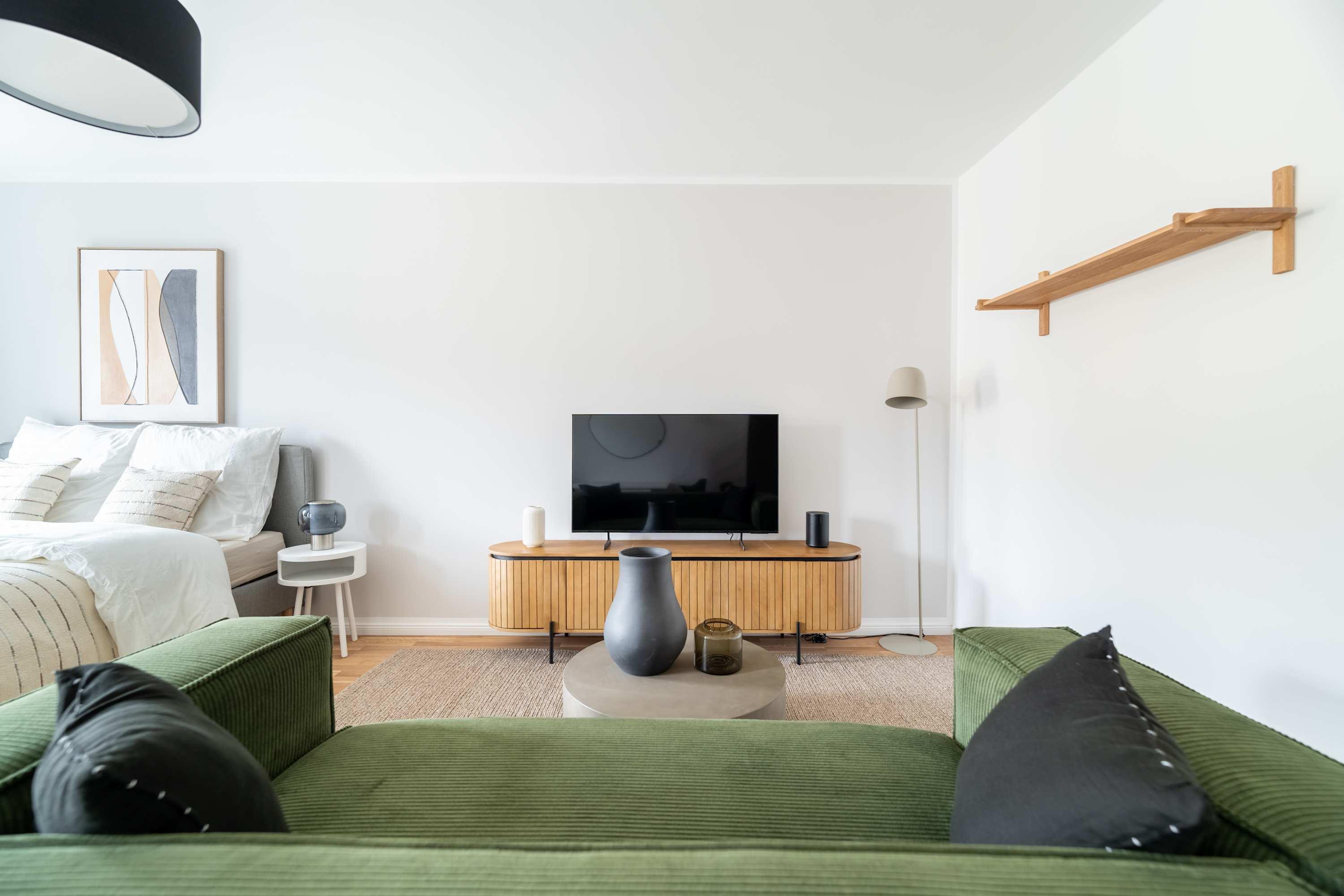 This stunning furnished studio apartment features contemporary design, a fully equipped kitchen, and a cozy living area with breathtaking views. Perfectly situated, you'll have easy access to everything that makes Berlin vibrant and exciting!