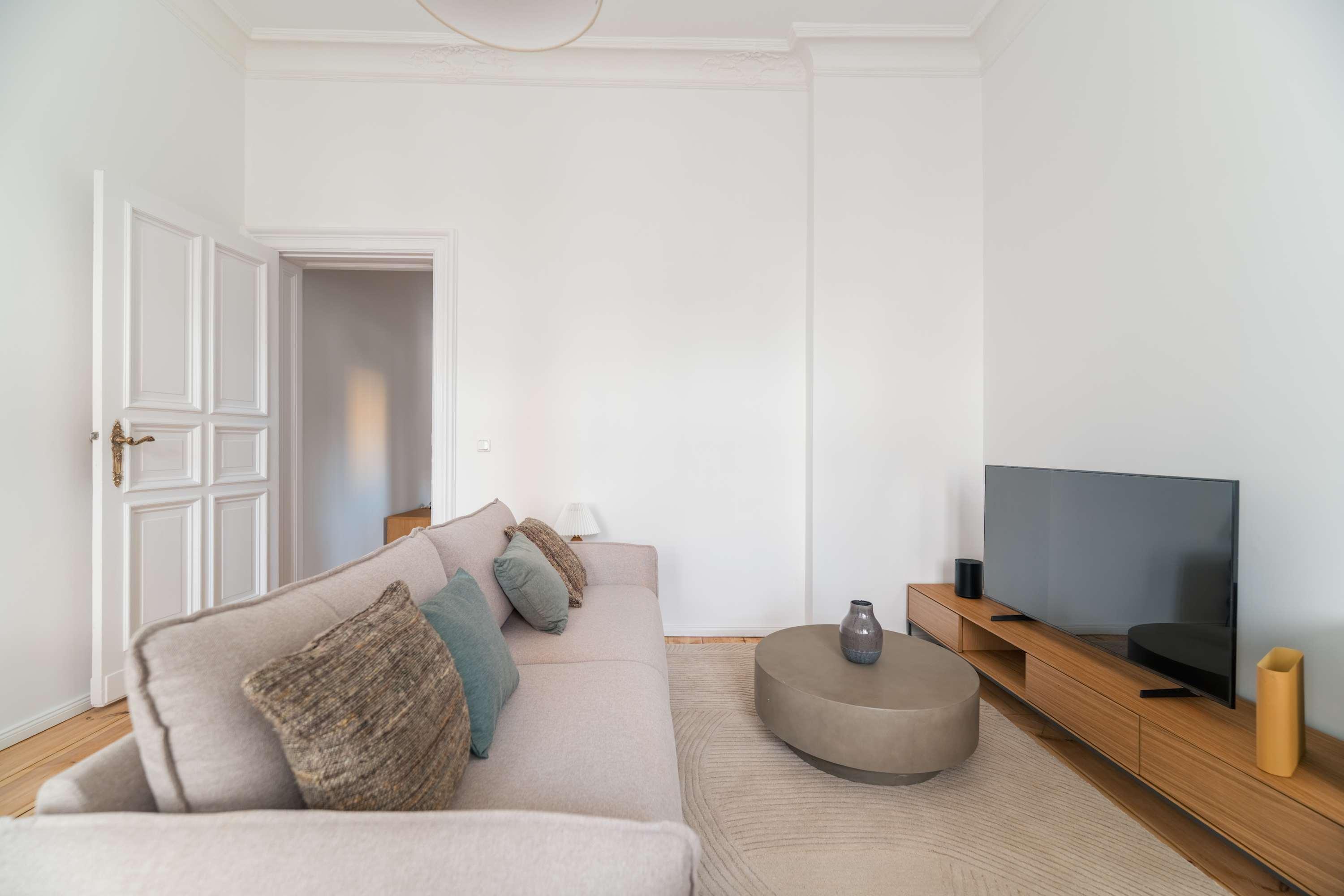 This stunning furnished one bedroom apartment features contemporary design, a fully equipped kitchen, and a cozy living area with breathtaking views. Perfectly situated, you'll have easy access to everything that makes Berlin vibrant and exciting!